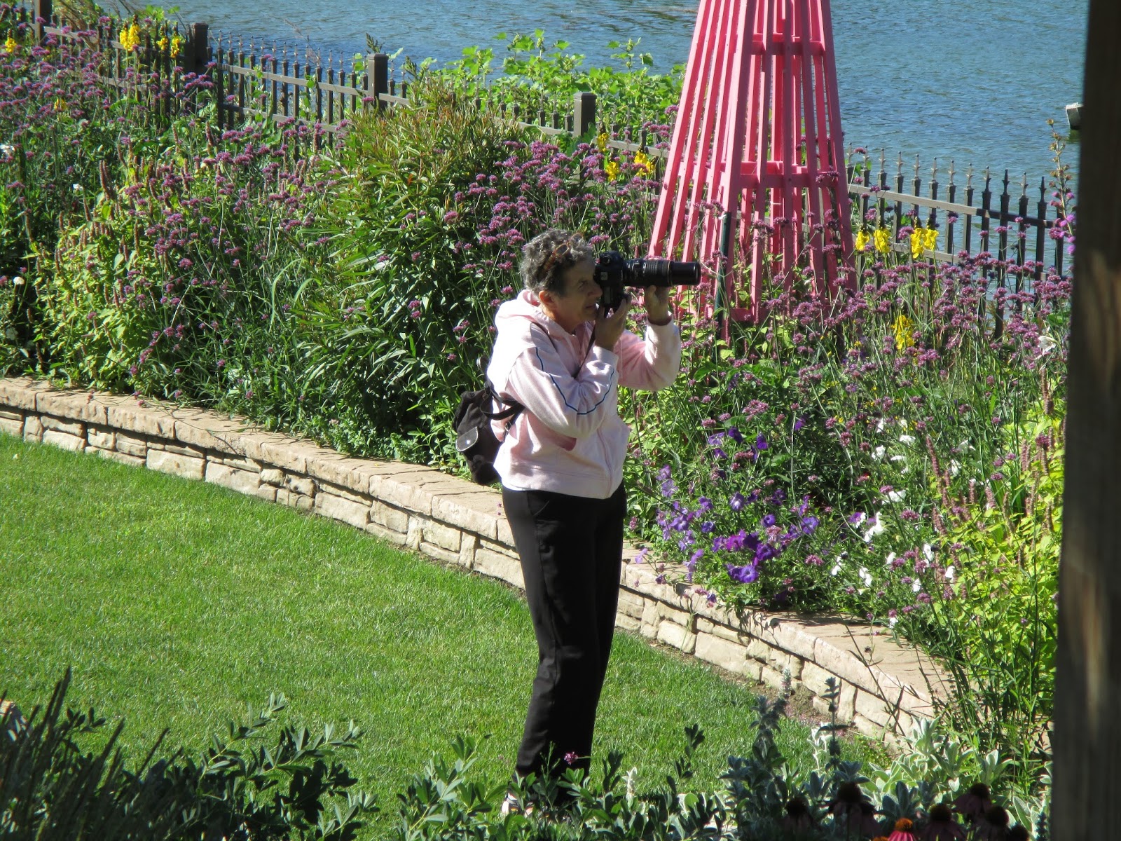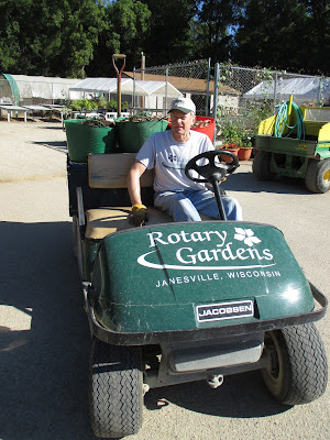 Our volunteers had a productive day. Above are Jim (left) and Dave constructing a small boat…not really. That will be a raised, accessible planter that rolls and can be moved like a wheelbarrow. Vern and Ron Y. (sixth photo down) were also in the vicinity working on carpentry projects. Pat M. was in for more prep work for the Holiday Lights Show (HLS) which continues to get closer on the calendar. Alan (directly below) did a nice job edging and tidying the beds at the Horticulture Center. Dr. Gredler was out mowing today and Maury ran multiple errands for us. The second photo down shows Shirley (left) and Betty out in the gardens where they spent time tidying their respective garden beds (which both still look spectacular). The third photo down shows Ron R. (driving) and Ron P. heading back from path tidying. The guys, along with Lloyd in the fourth photo down, were not only collecting debris but replacing gravel as needed, weeding and in essence, focusing on path quality. The fifth photo down shows Marsha M. taking photos in the Smelly Garden theme of the Nancy Yahr Memorial Children’s Garden. She is an excellent photographer and allowed me to cut in front of her for the neat monarch shot further below! Kathy was in for some tidying in multiple areas and we also saw Art and many others.