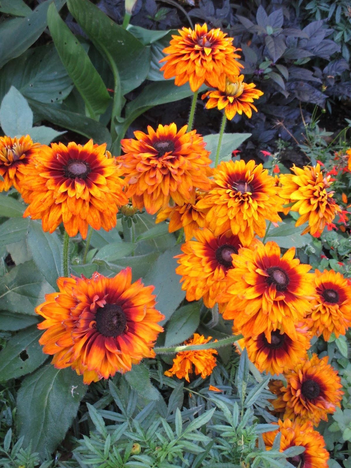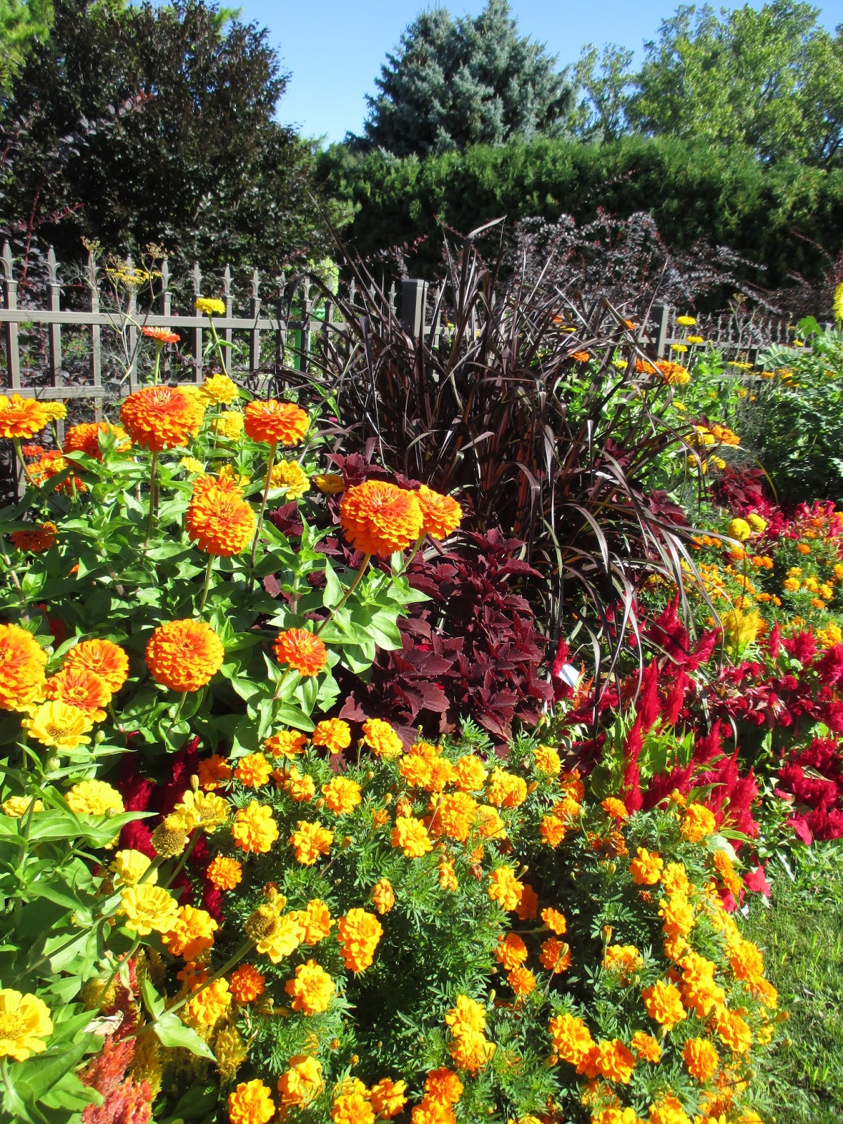 Today was another beautiful day although it was a cool morning at 54 degrees F with the high temperature right around 70 degrees F. It sure feels like early October out in the gardens. However, the displays (like that above in the North point garden) still look vivid (see below too). We don’t have to water quite as often although our hope is to extend the color as late as possible in to the season. It was perfect working weather and we had a nice turnout of volunteers that accomplished a wide range of tasks along with our talented grounds crew.