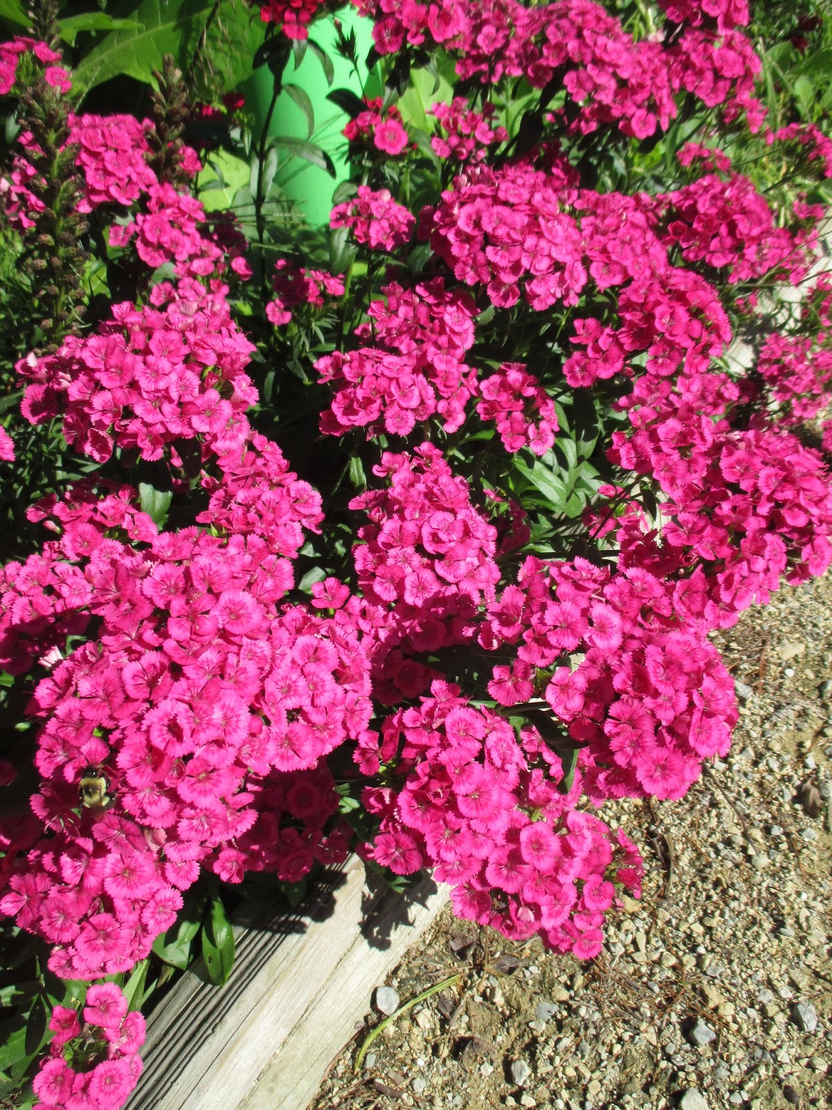 The grounds crew kept active today. “Newbie” Larry H. (above) spent his day mulching in the Scottish garden which really needed the attention! He did a nice job. Cindy tidied up multiple areas, weeded, watered and had some duties in the yard as well. Janice did some hand watering, tidying and did the cutting display as well. Big John and Terry bonded today as they both set up sprinklers, watered containers, touched up the shearing in the formal gardens and dug up/potted daylilies (Hemerocallis). I was able to tour the gardens but have some serious desk work to catch up on. This entire week looks nice and cool.