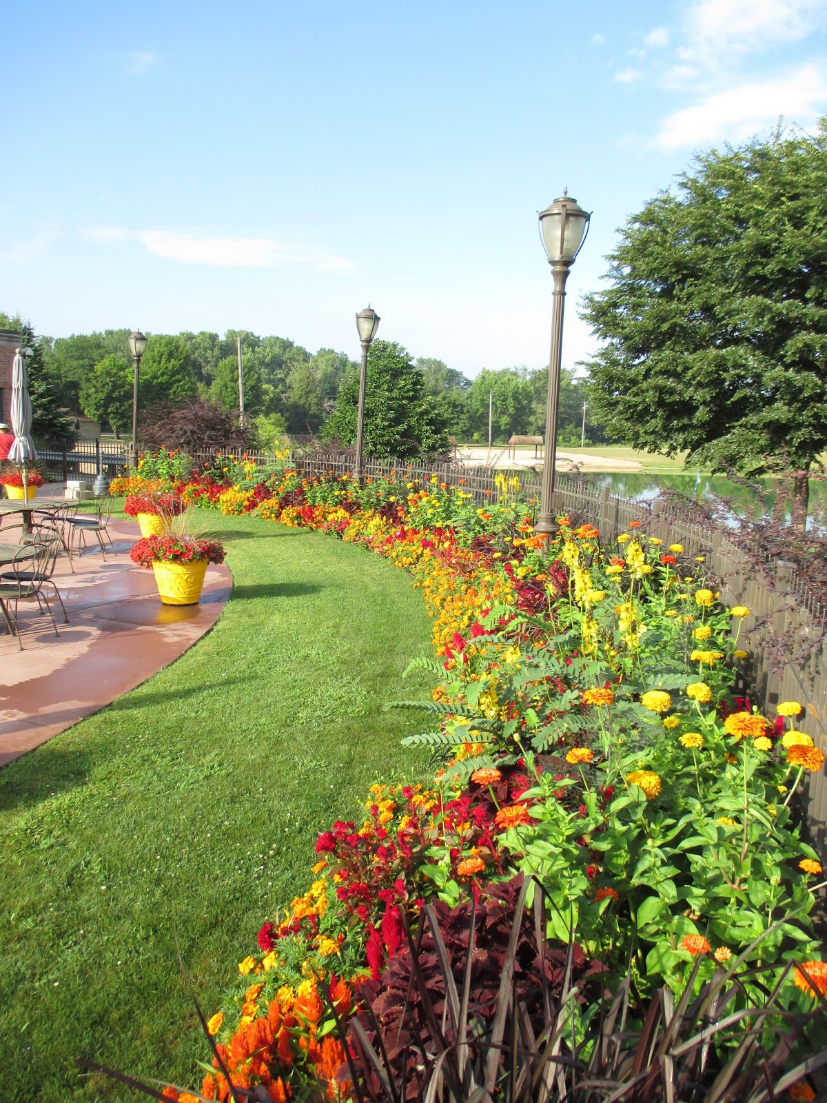 As I type this blog in the afternoon (3:05 pm), we just had a brief downpour which I suppose is better than nothing! We had hoped for more rain over the past couple of days (and weeks) and have made huge efforts out in the gardens to keep up with this dry spell via irrigation, sprinklers and good old-fashioned hand watering! The gardens are beautiful for sure as seen above in the Nancy Yahr Memorial Children’s Garden which showcases our Smelly Garden theme this year. Directly below are some of the herbs that are meant for touching and smelling as part of that display. Tomorrow, this garden will be featured as part of our Gardening As Therapy symposium which should be lots of fun. We have over 60 participants coming to learn about incorporating gardening in to a therapy program for a wide range of audiences. The day will include lectures and lots of hands on experiences (like the Smelly Garden!). We had a great turnout of volunteers today and our grounds staff kept busy too!