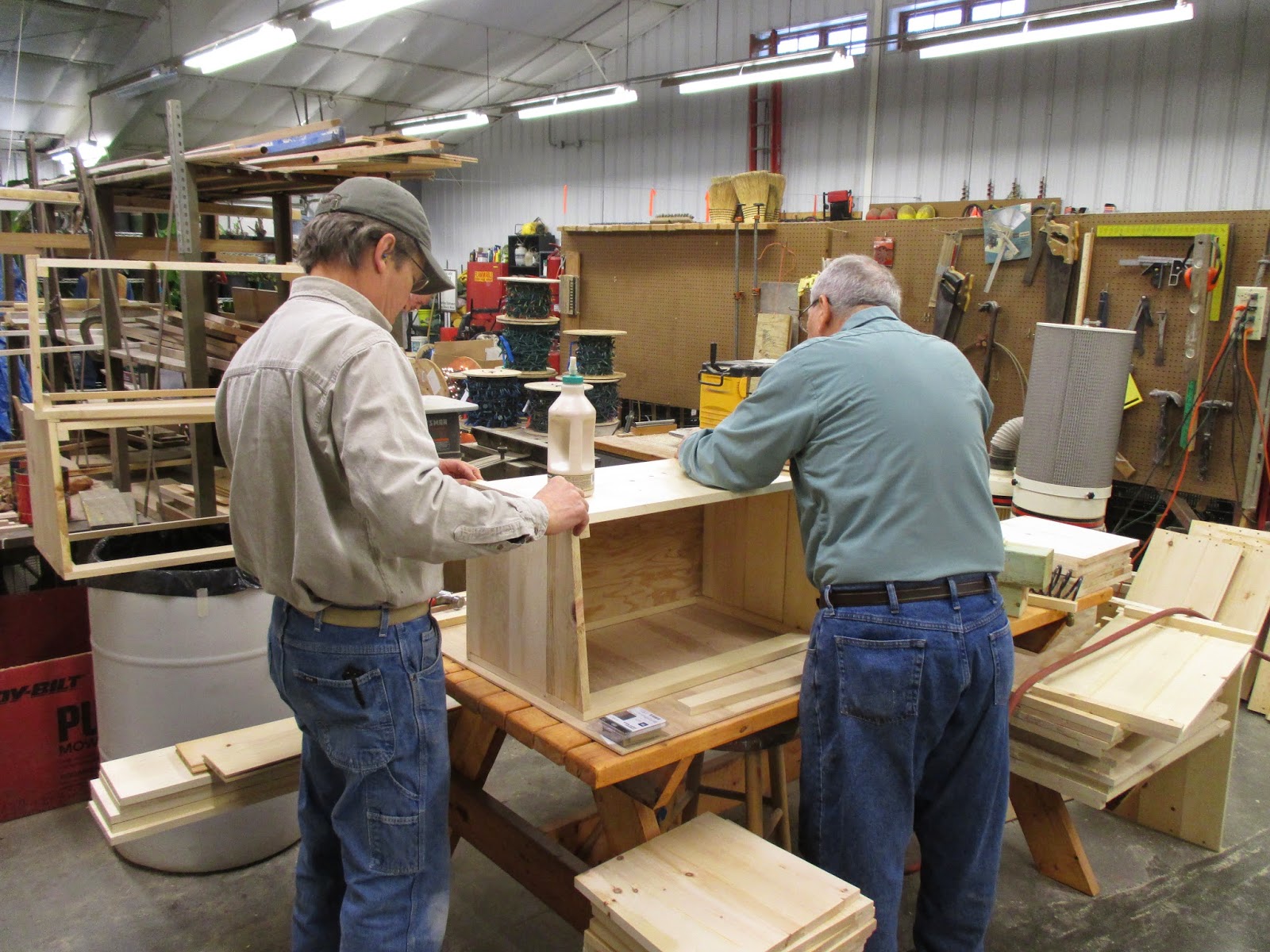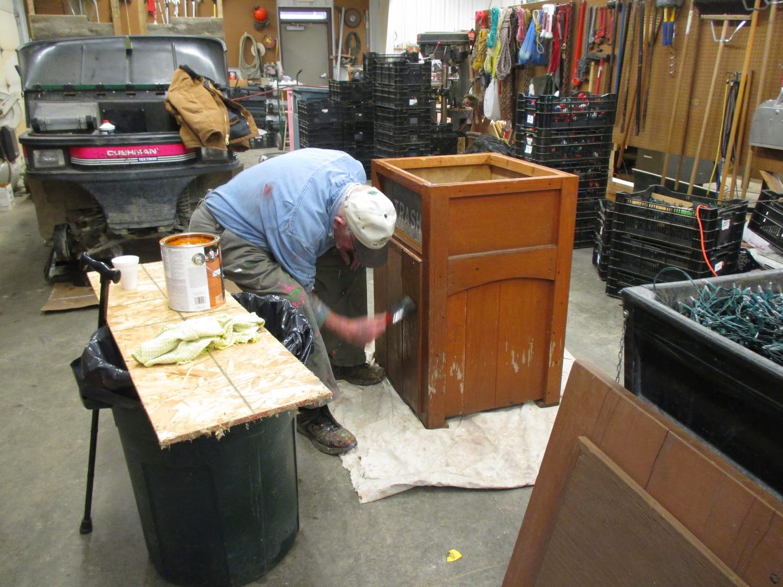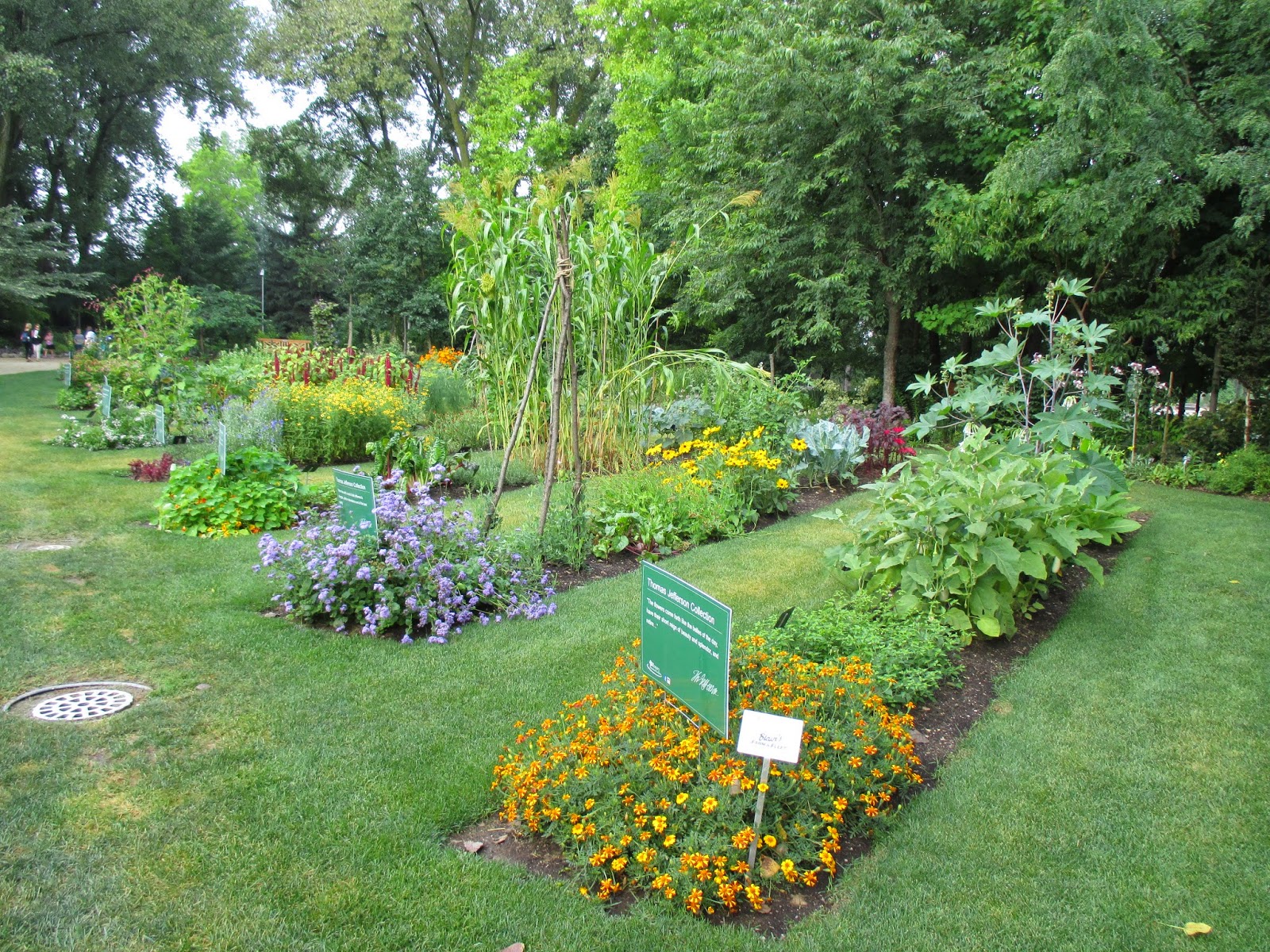 Today was super busy at the Horticulture Center with all sorts of activities occurring throughout the day. Our lights extraction team of Larry H., Larry O., Peg, Alan and Marv B. all went out in the gardens to retrieve lights. Pat M. continued to process lights as they came in and continued to utilize more spools brought in by Bob K. Vern, Bob K., Jim and Dave continued work on carpentry projects (see below) and Dr. Gredler started re-staining some of our garbage bins for a fresh look. Above (left to right) are Janice, Pat R. and Pat C. working on a project in the break room this morning. We also had Kay and Bev in the office working on indoor tasks and Cindy was in later for another project. Deb G. stopped by for a meeting with Bev and me and we also saw Bill O., Gary S., Rollie and many others today. The photos below have captions and I had to include some photos at the bottom to add color and promote year #2 for our Thomas Jefferson Collection. This garden was a huge hit last year and was the “brain child” of Janice. Speaking of Thomas Jefferson, Peter Hatch, retired Director of Gardens and Grounds at Monticello, will be participating in our March 21st Spring Symposium entitled Garden Inspirations: The Spice of Life. We’ll also have Kyle Cherek of the Wisconsin Foodie and yours truly. We are now accepting registrations so check out this neat event on our website at rotarygardens.wpengine.com. At the bottom are some neat shots of this collection in 2014 which will be equally awesome this year.