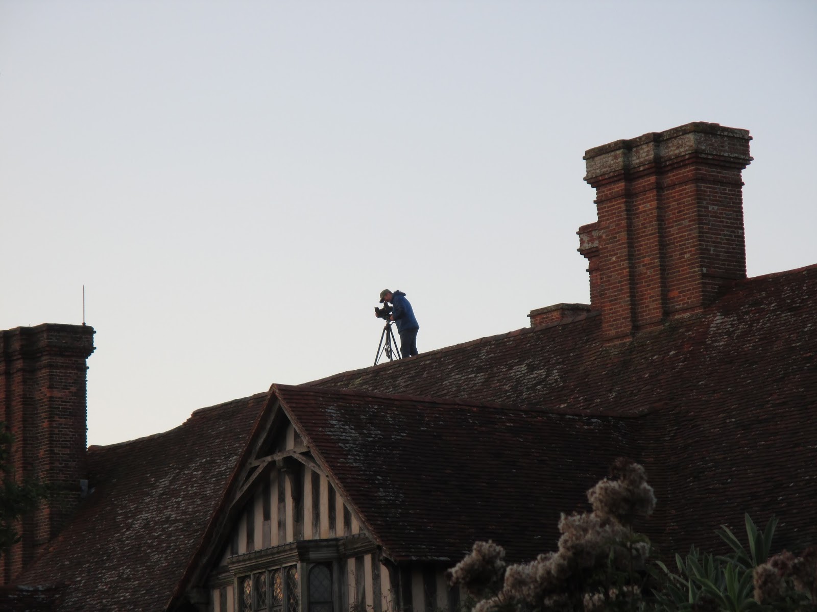 Today was another one with excellent weather although the temperatures are getting a bit chillier as we get closer to October. This morning was another excellent time to take photos as the the dew puts on a “fresh patina” to the morning landscape. I continue to photograph both the Barn Garden and Sunk Garden (represented below) and noted the photographer on the roof (third photo down) who I had heard EARLY this morning up there. I imagine the view is spectacular.