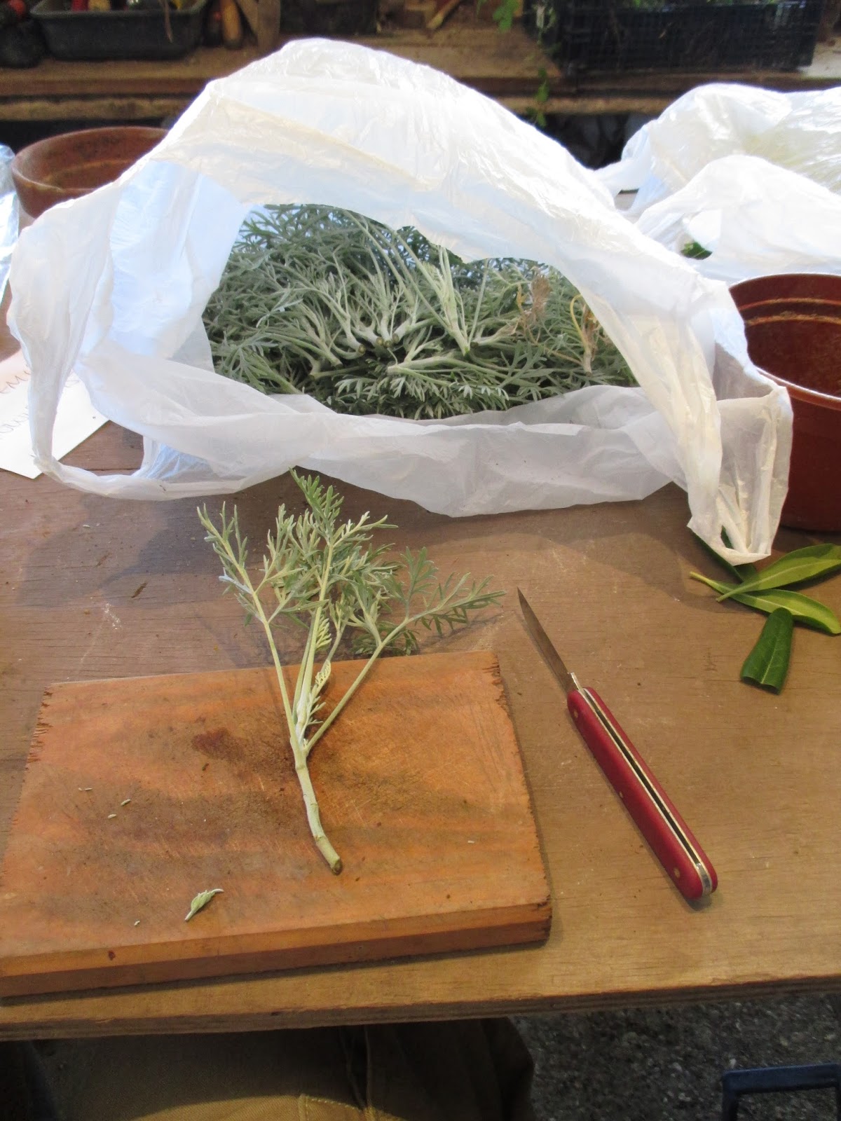 we did about 100 of these Cotoneaster horizontalis (above) which will eventually look like the specimen below…(seen at Fairlight Hall two weekends ago….and plenty at Great Dixter) – the 25 or so cuttings above will be re-potted later for nursery sales