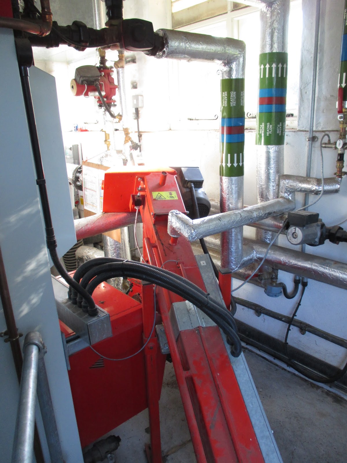 Ben (Head of Maintenance) showed us their Biomass Boiler system which was installed three years ago. In lieu of sounding ignorant trying to describe exactly how this works, I encourage anyone interested to view www.building4change.com/article.jsp?id=1257#.Vgwu0vlVikp to understand this energy-efficient process and the very interesting history regarding the installation of this substantial system. The circular device above and below with the “arms” is rotating and feeding locally sourced woodchips in to this system. Pretty “Eco-Cool” (and warm)!