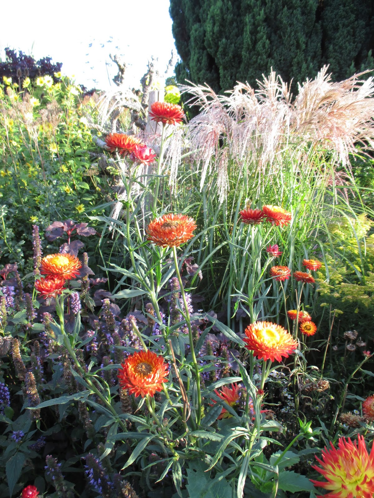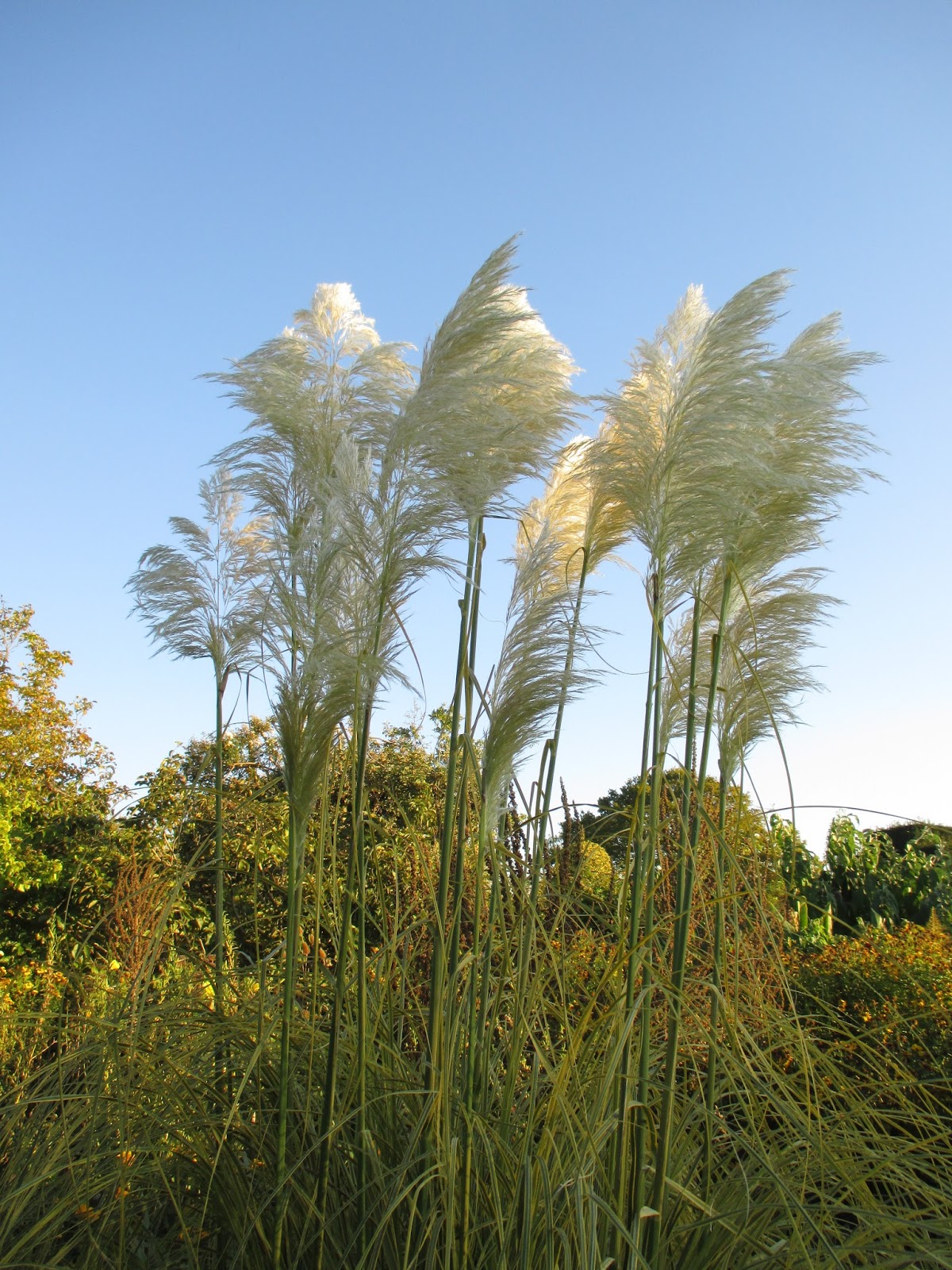the plumes of variegated pampas grass (Cortaderia sp.) are a focal point right now!