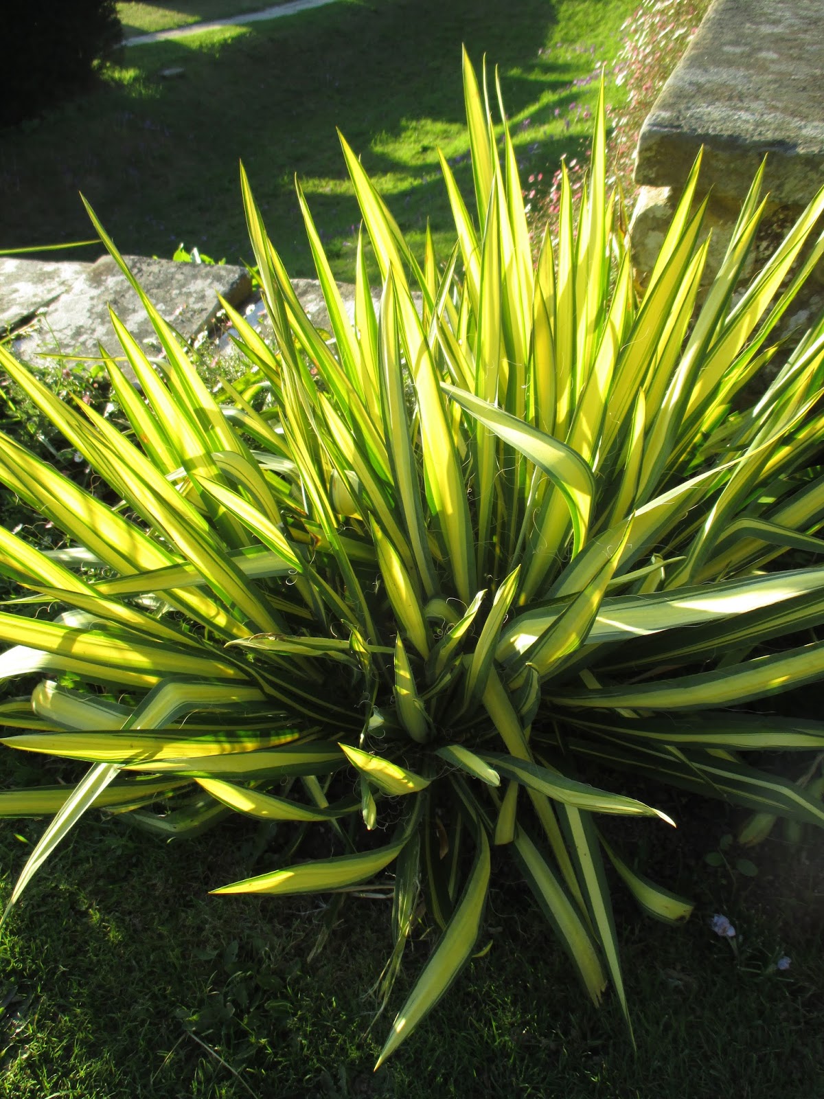 afternoon light through a yucca (Yucca filamentosa)..probably the variety ‘Color Guard’