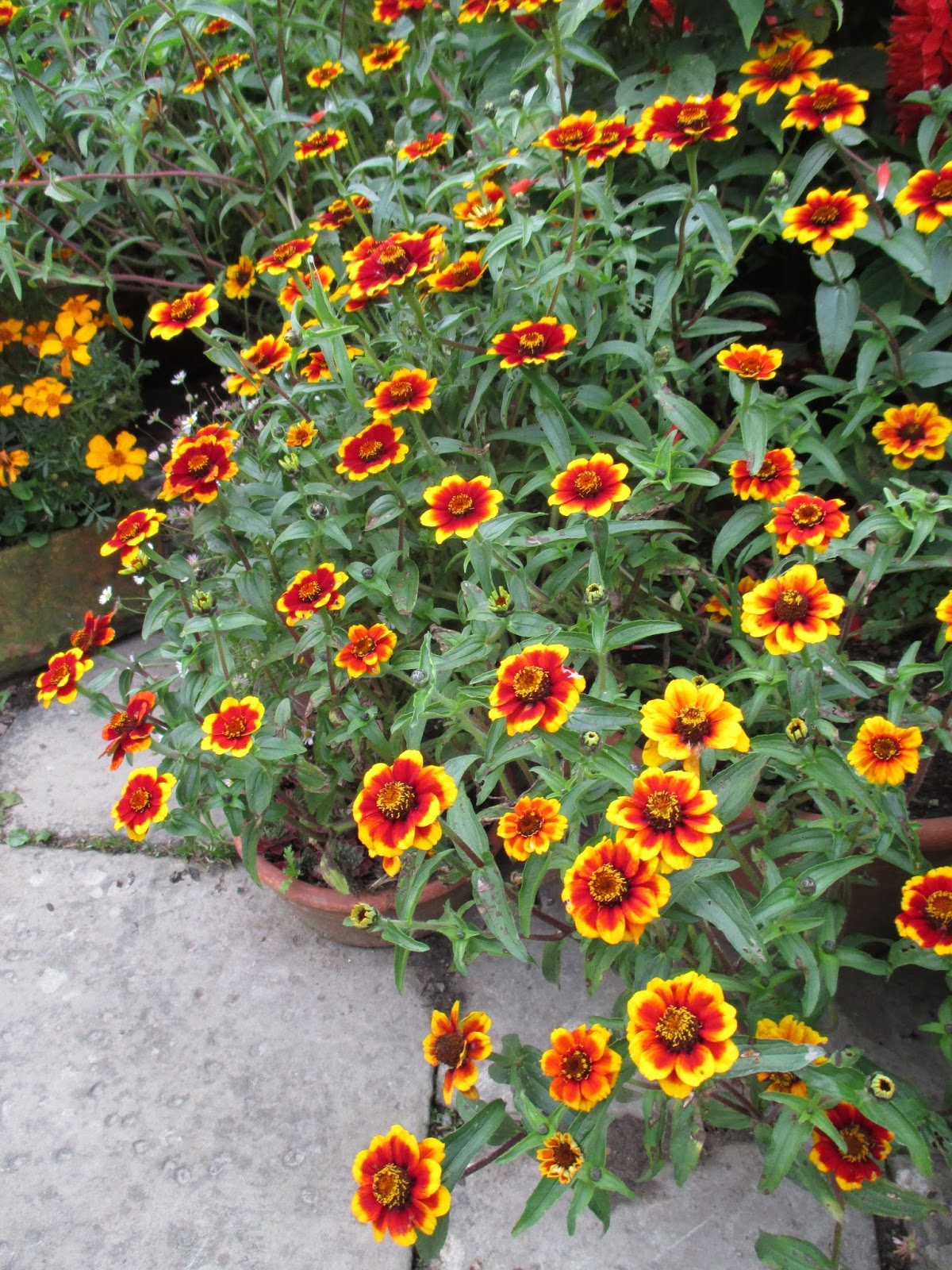 I believe these are ‘Chippendale’ zinnias (Zinnia haageana) above