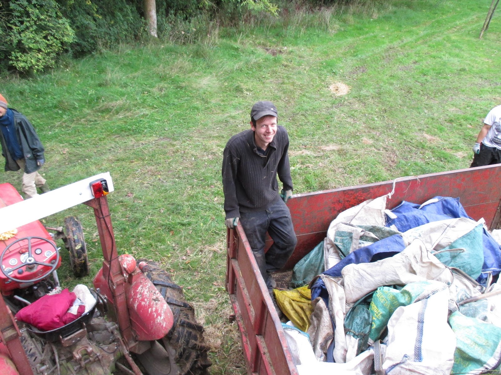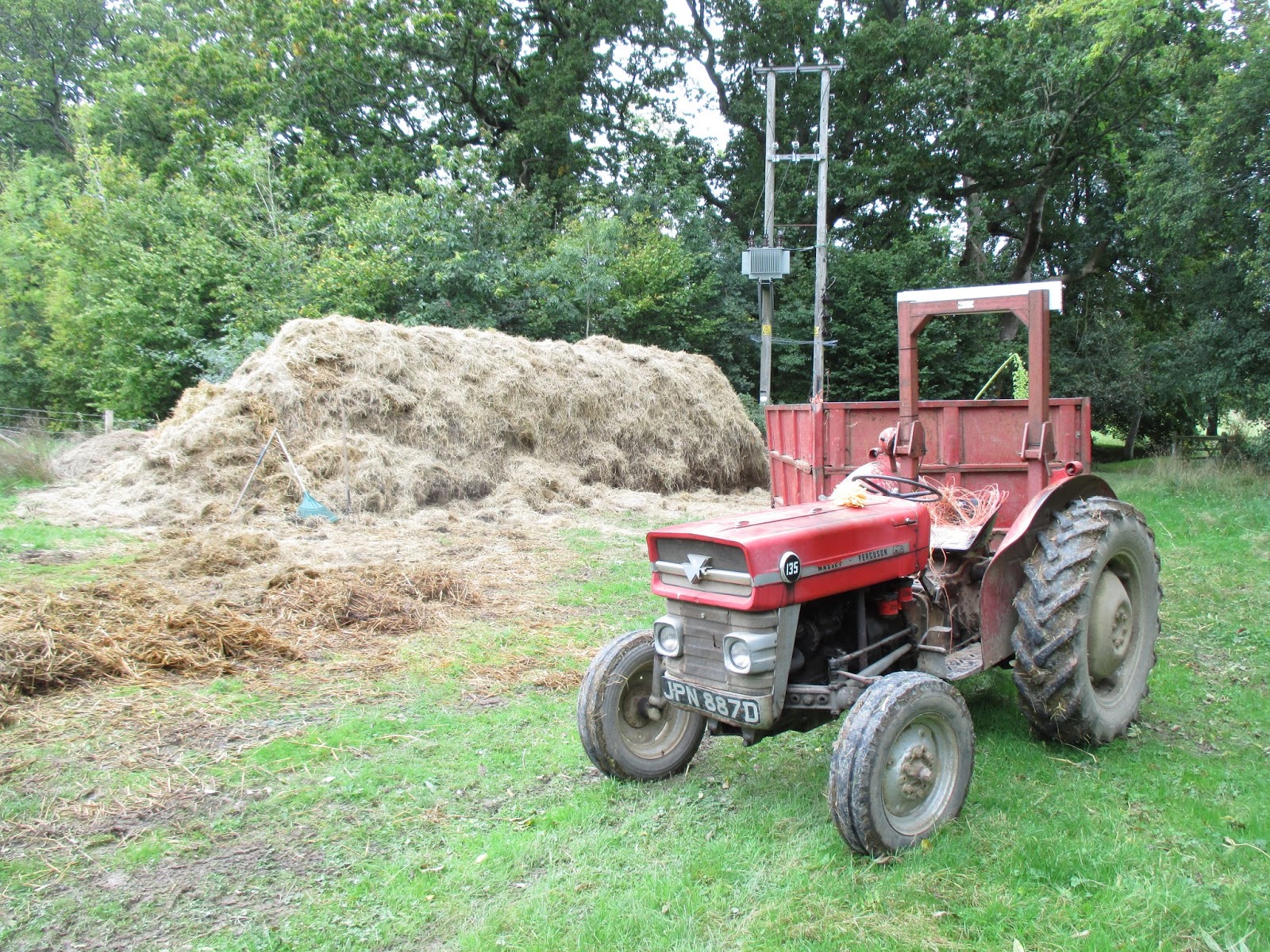 As we (Lewis, Hayden, Mike, Sam and I) were stacking hay on to this huge pile (seen above), Sam slipped down off the pile and became wedged behind the tractor and buried with hay. Before giving a serious effort in helping extricate him, I had to snap this photo below! He’s a good sport and has returned to Great Dixter as a student for a year.
