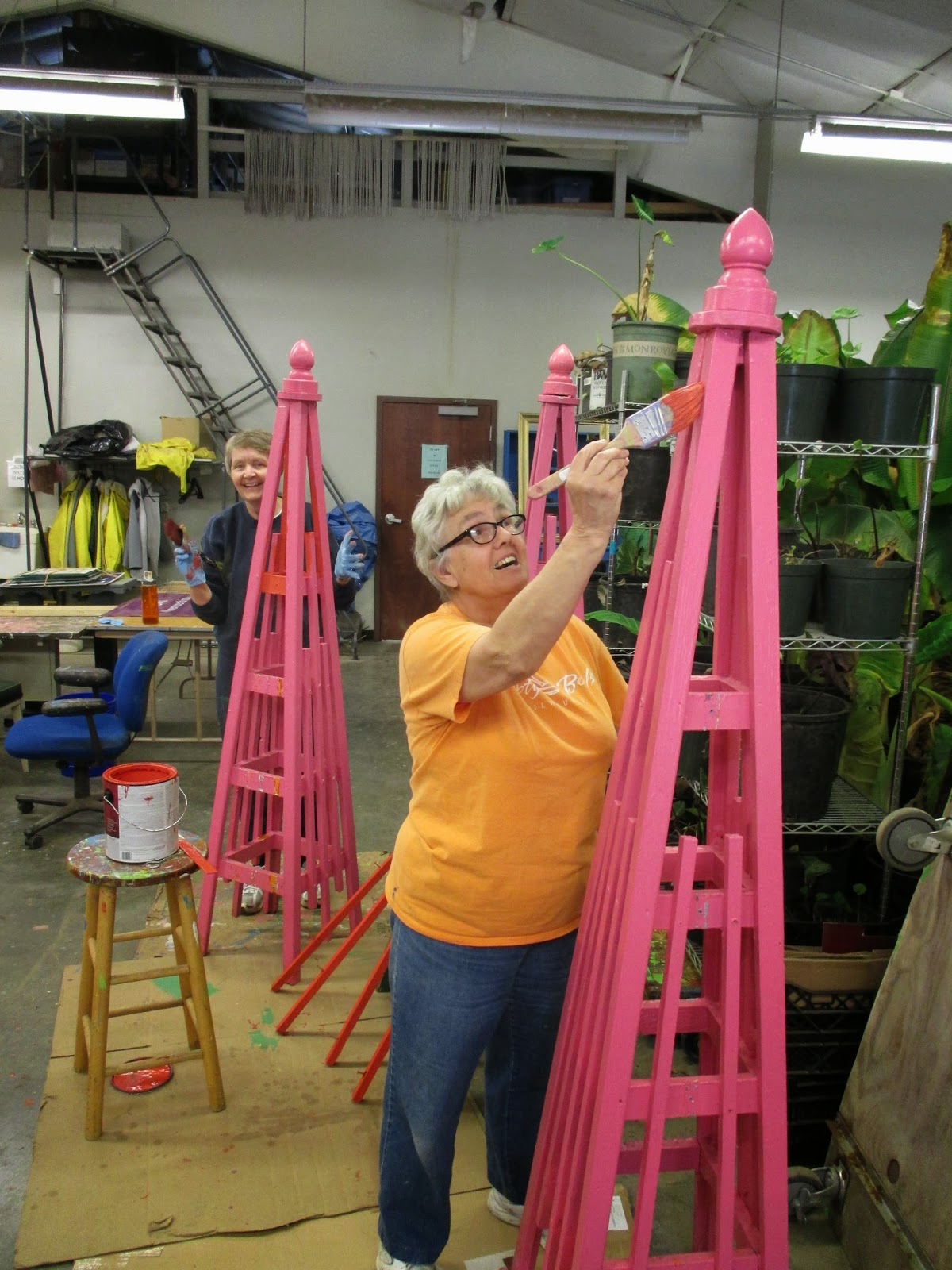 We had some action both out in the gardens and at the Horticulture Center today. Urban was out pruning for a couple of hours and Pat M. worked on some projects at the Horticulture Center and out in the gardens. Gena and Myrt (see photo at the bottom) did a nice job painting various objects with their 2015 colors and Pat R. and Kay (photo also at the bottom) continued with progress with assembling handouts, cutting up fliers and more processing of our Spring Plant Sale tags. That sale isn’t far away and will again have a wide range of perennials, shrubs, herbs and vegetables. This is an important fundraiser for the gardens so spread the word (and/or disperse some posters!). Bill O. came in to work on some projects in the afternoon and we also saw Kris K., Rollie and Dr. Yahr today.