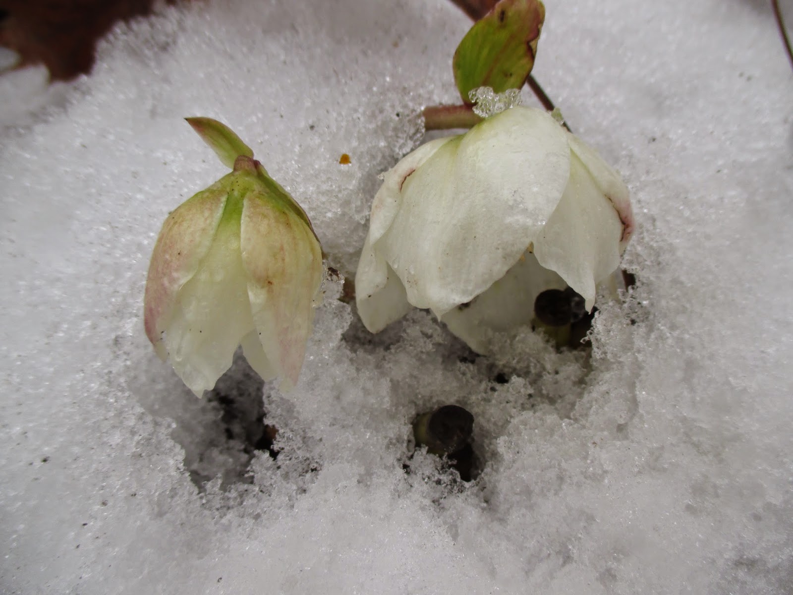 our Lenten rose (Helleborus niger) is ignoring the snow right now