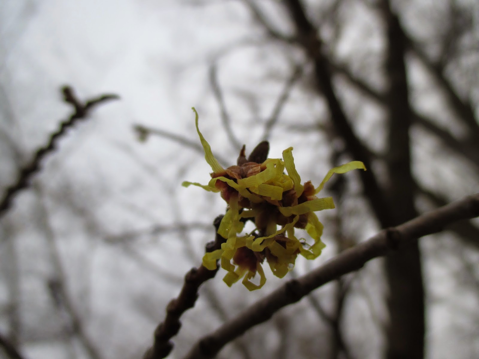 Vernal witchhazel (Hamamelis vernalis) is opening up nicely