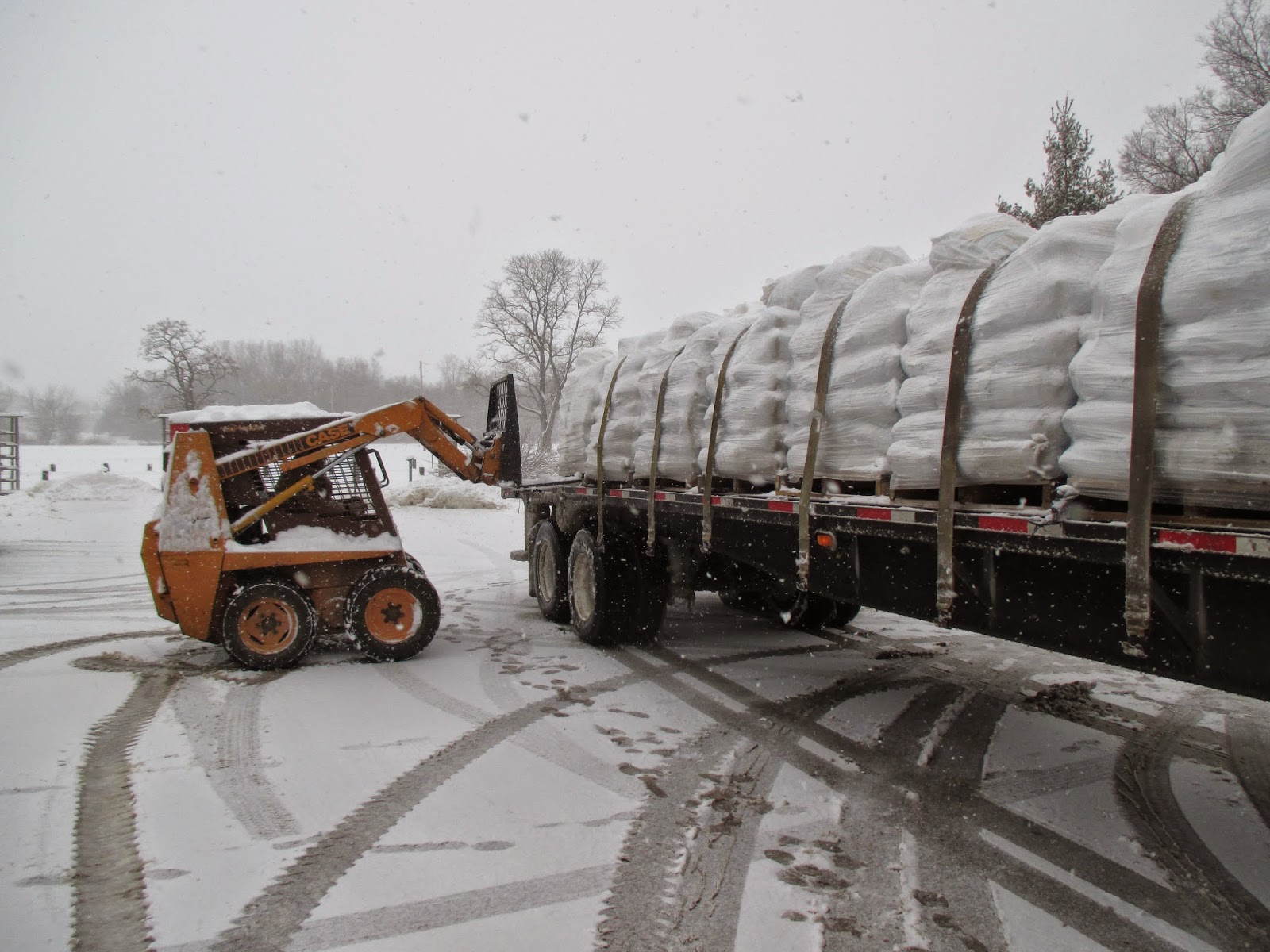 The bagged compost is here and ready to be sold starting Saturday, April 4th (8 am until 12 noon) at the Horticulture Center. Delivery by Leo (Midwest Trading) and unloading by our Larry wasn’t much fun on that snowy day but everything went well.