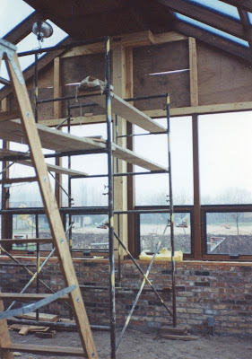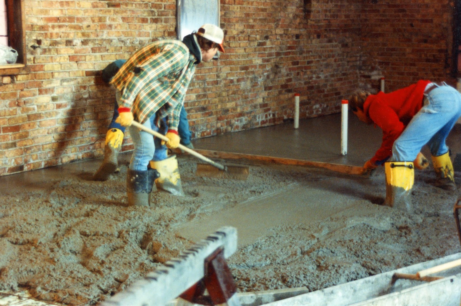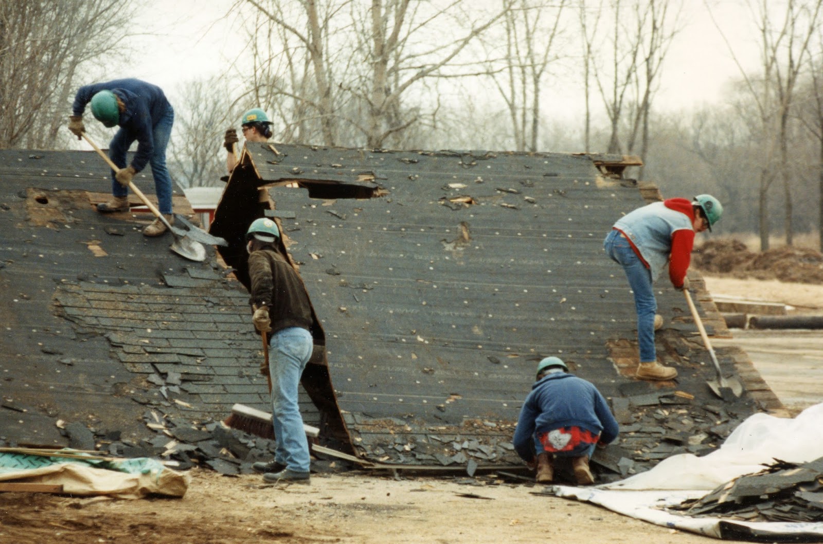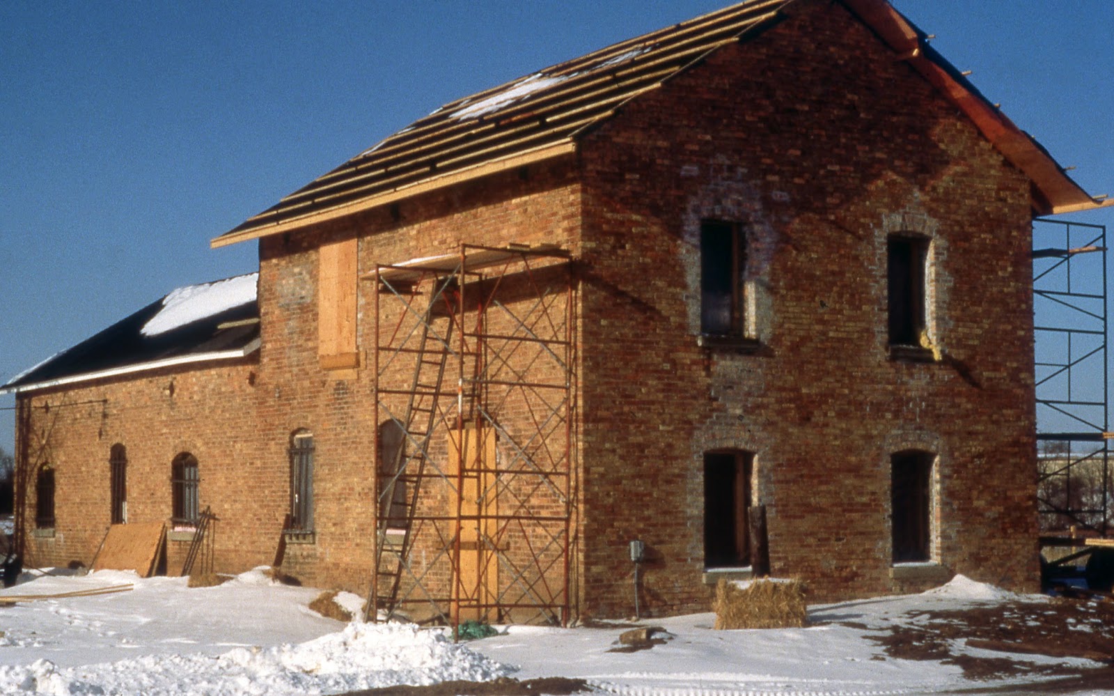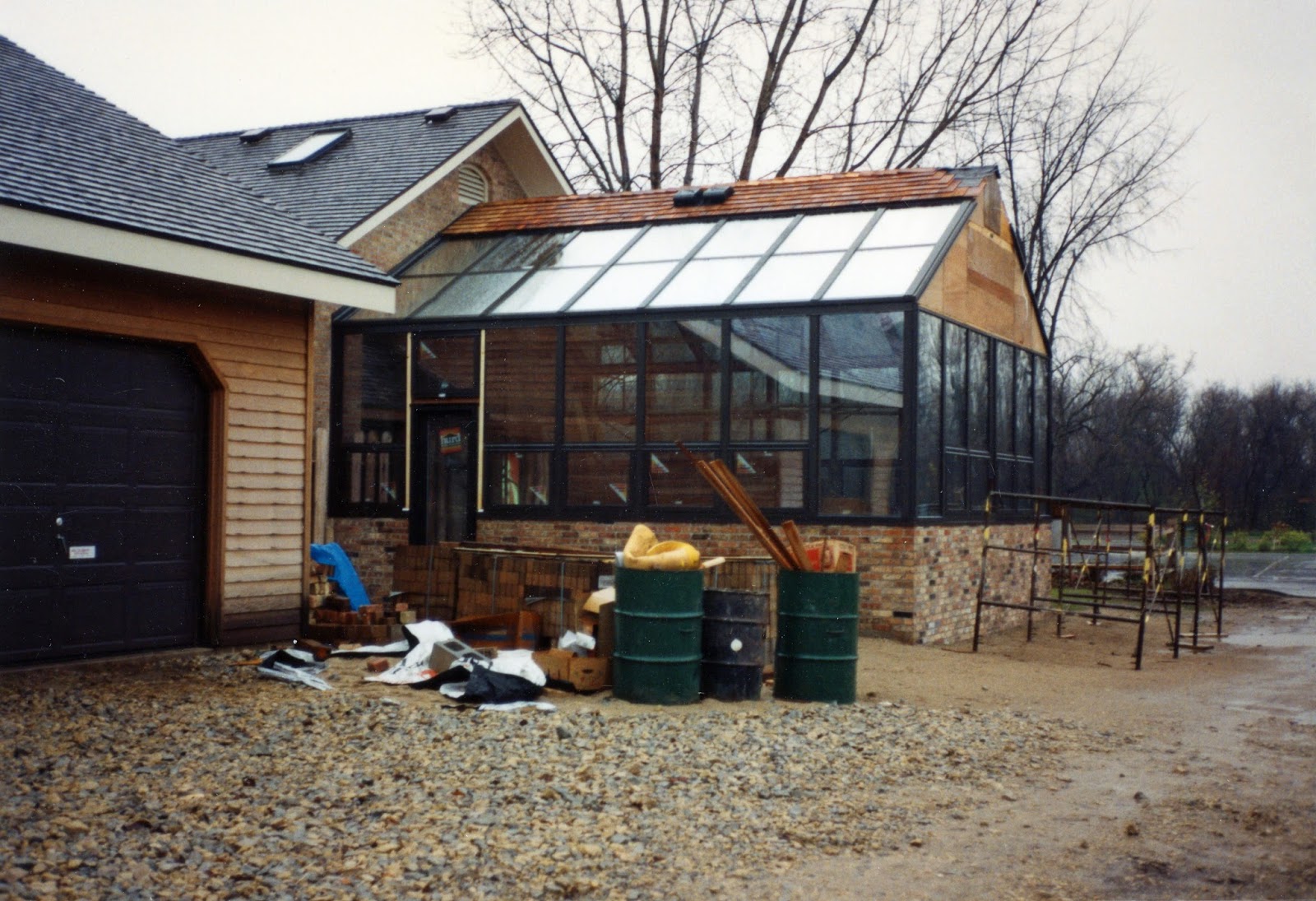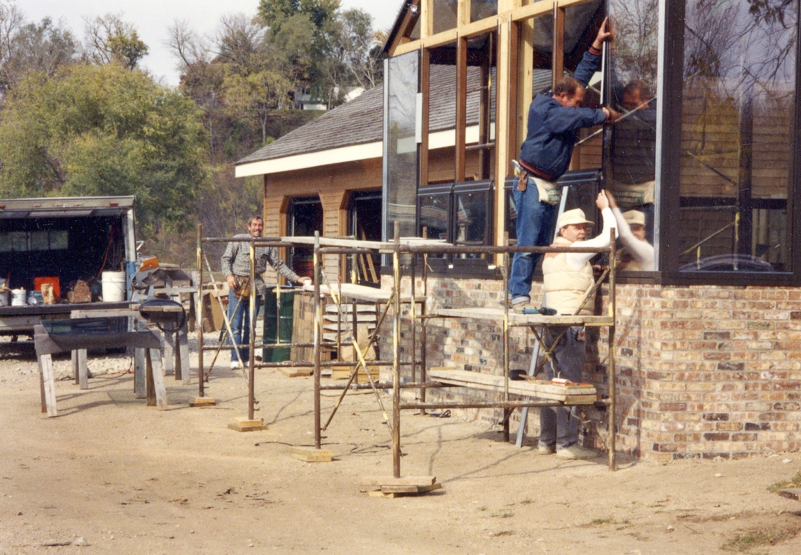 This series of photographs shows the conversion of the old Wilcox Sand & Gravel Office Building (above) in to the Rath Environmental Center back in 1989-1990. I hope my history is accurate but my understanding is that Dr. Yahr (RBG founder) saw the original building which had also been used as a residence (upstairs), cattle barn and essentially storage by the City of Janesville and envisioned saving this structure to become the first visitor’s center for Rotary Botanical Gardens. A generous donation from Duane Rath funded the conversion of the original structure which included a new roof, significant interior alterations and re-tuckpointing the existing brick facade. Many of the folks seen in these photos were volunteers from the GM Jobs Bank program and/or participants in the Wisconsin Conservation Corps program. Some of the interior work is shown along with the creation of the solarium which was removed in 2000 to accommodate the expansion of the visitor’s center to include the Parker Education Center. When I started at the gardens, there were six employees in the upstairs portion of the structure with bathrooms, a small kitchen, gift shop, meeting room and solarium on the first floor. We also has an attached three bay garage that housed all of our horticultural operations until the Horticulture Center was finished in 2001.