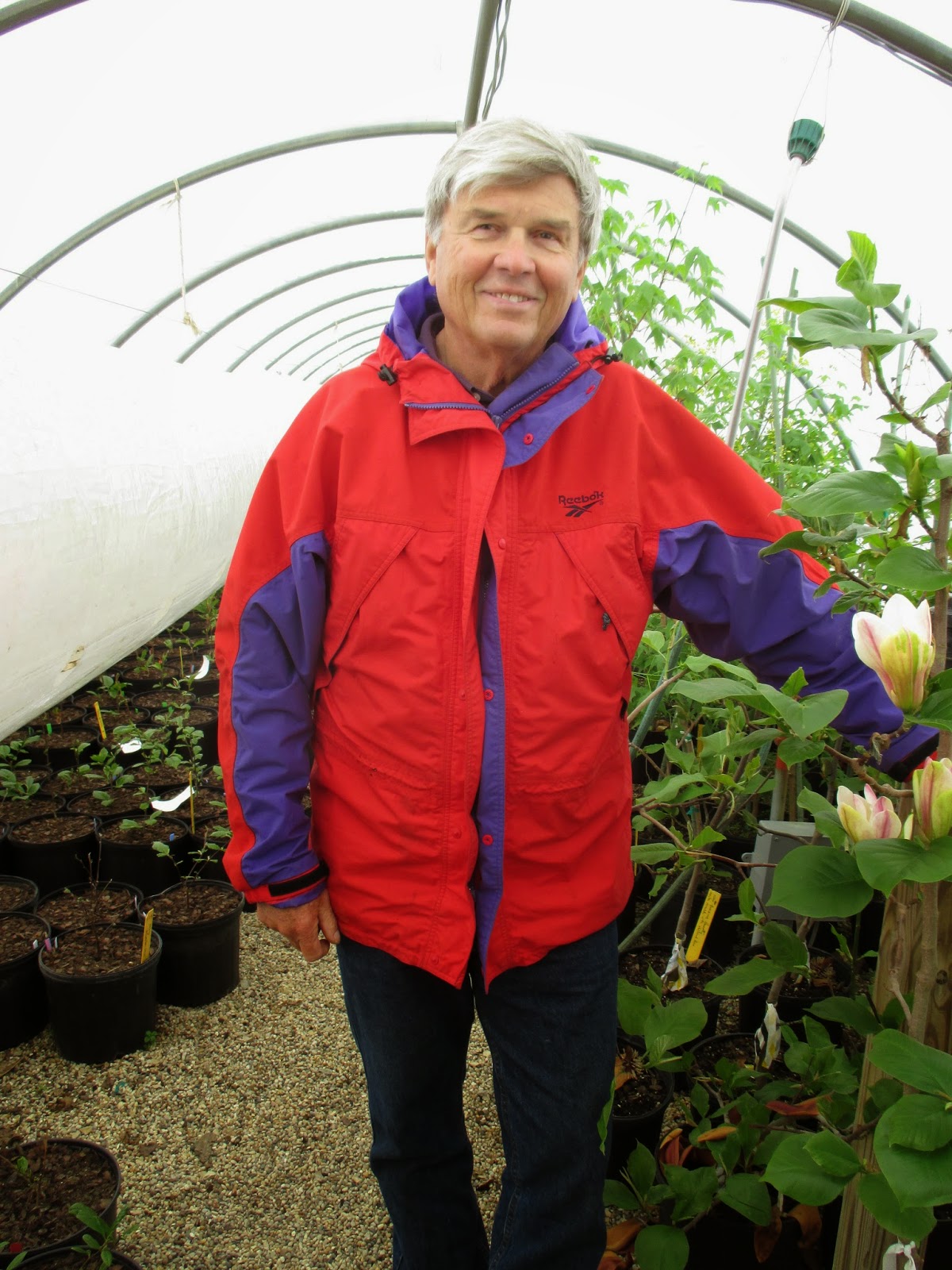 It was another crazy day at the gardens with pretty much drizzle all day. We sure could use the rain so I was happy to have such consistent, soaking precipitation. It was, however, cool and damp although we hope for a warm up by later in the week for the Spring Plant Sale. This blog is a selfish mention of a great trip I had to Klehm’s Song Sparrow Farm & Nursery (http://www.songsparrow.com/) this morning to pick up plants for the sale and gardens. I received a great tour of the greenhouses by Jose as the truck and trailer were loaded and we ran in to the famous Roy Klehm (above). Roy gave me a tour of some exciting new plant material and was an excellent host. It was great to see Erika and Tannis as well. Below are just a very few of the totally awesome plants I saw this morning. I so enjoy talking with Roy about plants and his knowledge is legendary.
