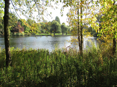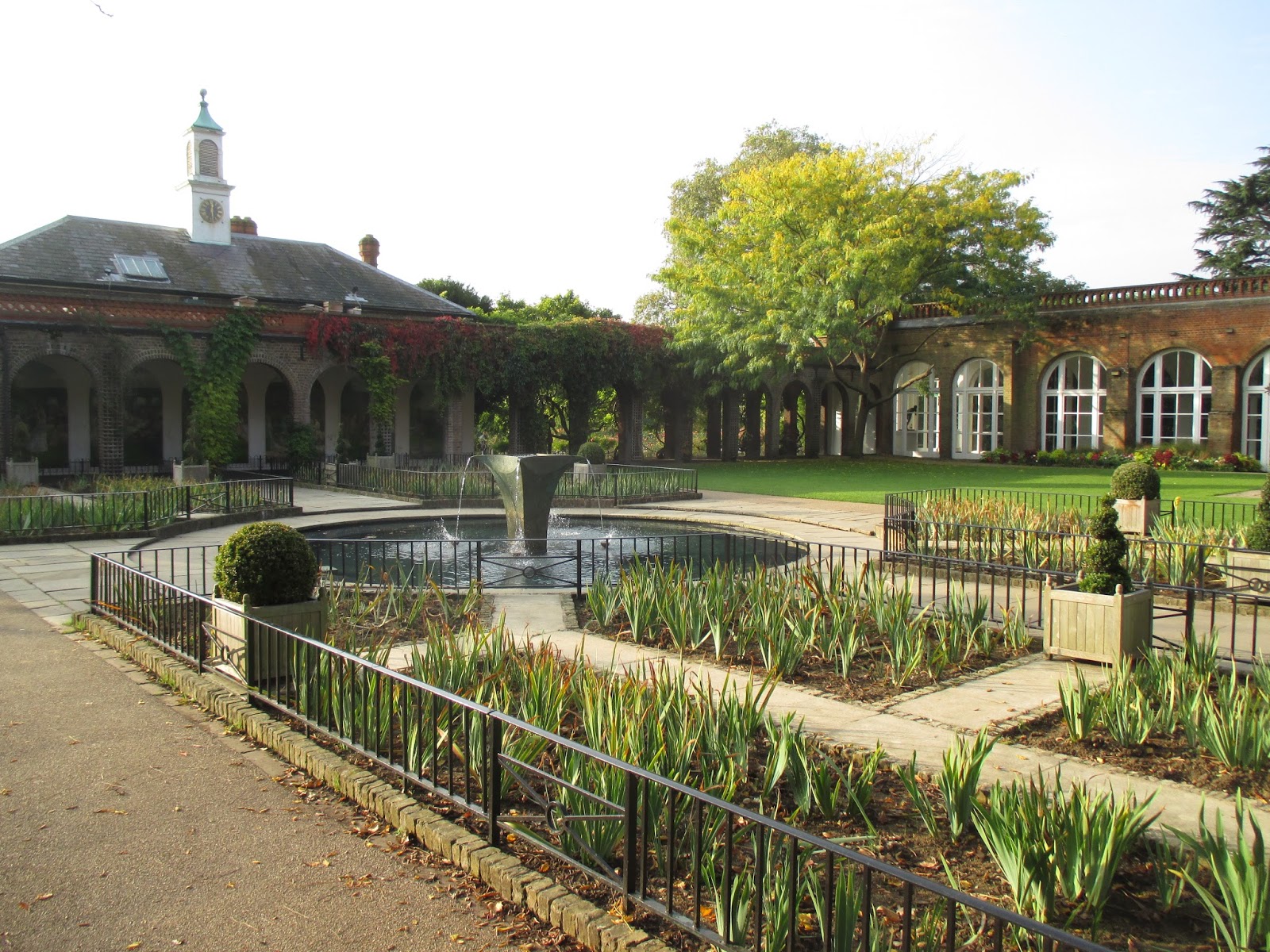 Today started early with a walk to Holland Park which was Southwest of my hotel and well worth the 40 minute walk! This 54 acre park was already heavily used by joggers, walkers (and dogs) this morning. I enjoyed the dahlias (seen above) and always like these over-sized chess sets (below) whenever I see them! While many of the gardens were past peak or had been cleared of annuals, the Kyoto Garden (built in 1991) was excellent (see further below). Holland Park and the gardens contained within were excellent and I then took a route back through different neighborhoods (including where many of the consulates from other countries were situated) and ultimately through Hyde Park again where I ran in to the Royal Parks Foundation Half Marathon which was starting and ending in the park. It made for an interesting timing issue of finding a gap to run through (three times!)!
