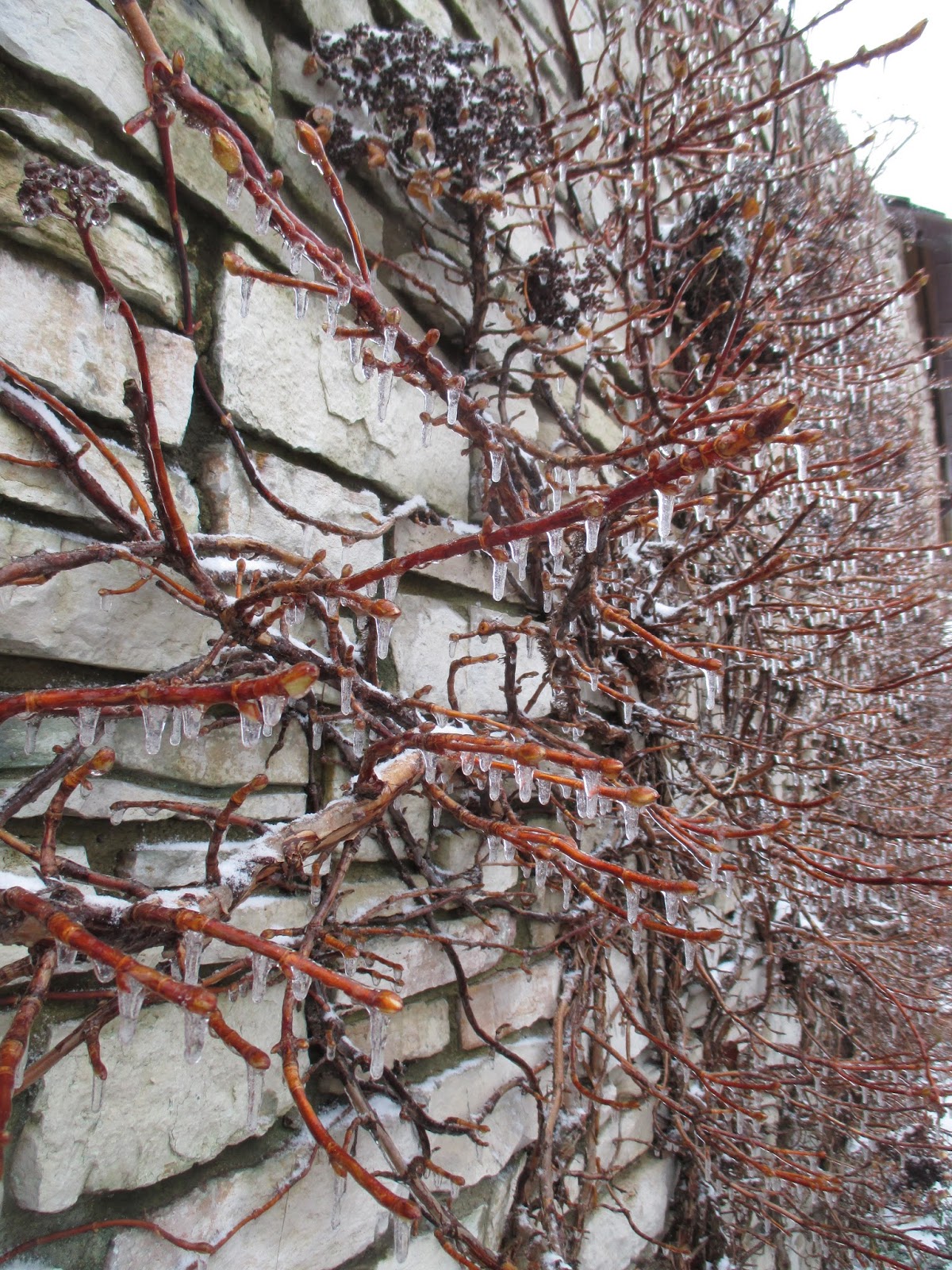 ice formation of climbing hydragea (Hydrangea anomala subsp. petiolaris)