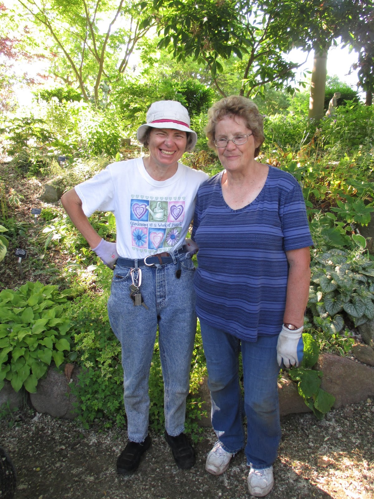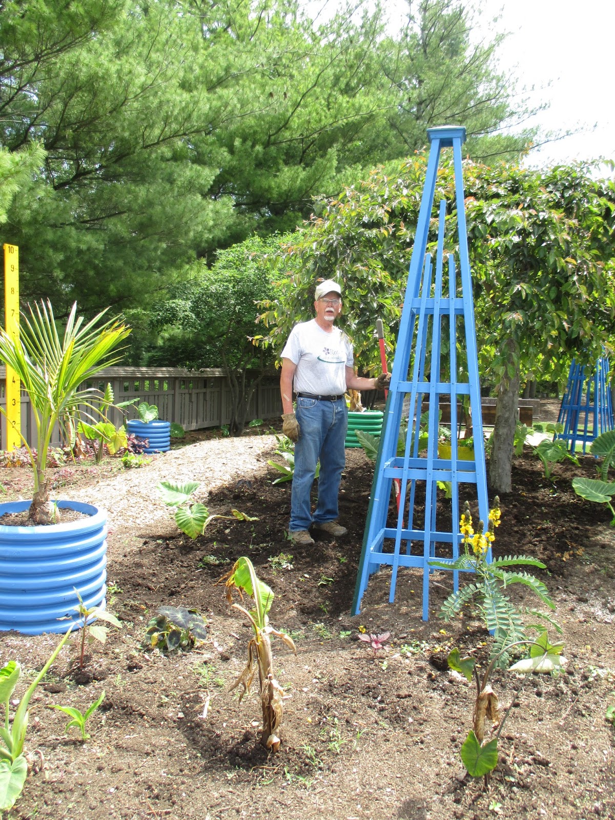 Although we all made fun of Bob K. today for his “Easter bonnet” hat (seen above), he was a huge help with watering the entire yard. Despite the fact that many plants have gone out in the gardens, it still takes a couple hours to get through the watering and he did a nice job. I wasn’t able to photograph all the volunteers today but we had a lot of gardening going on as well as other tasks. Thanks to Bob K., Eva, Kathy, Kay, Vicky, Roy, Marv, Vern, Dr. Gredler, Karen M., Mary, Gena, Myrt, Betty, Patty, Mary H., Kathy #2, Jan, Alan, Lois, Janice and all the Chestnut House volunteers. We also saw Kris K., new intern Molly, Maury (errands), Dick H., Dave, Bill O. and many others today. I’ve been impressed with the great volunteer turnouts daily this time of year and while we still have lots to plant and weeds to address, we’re making progress every day!