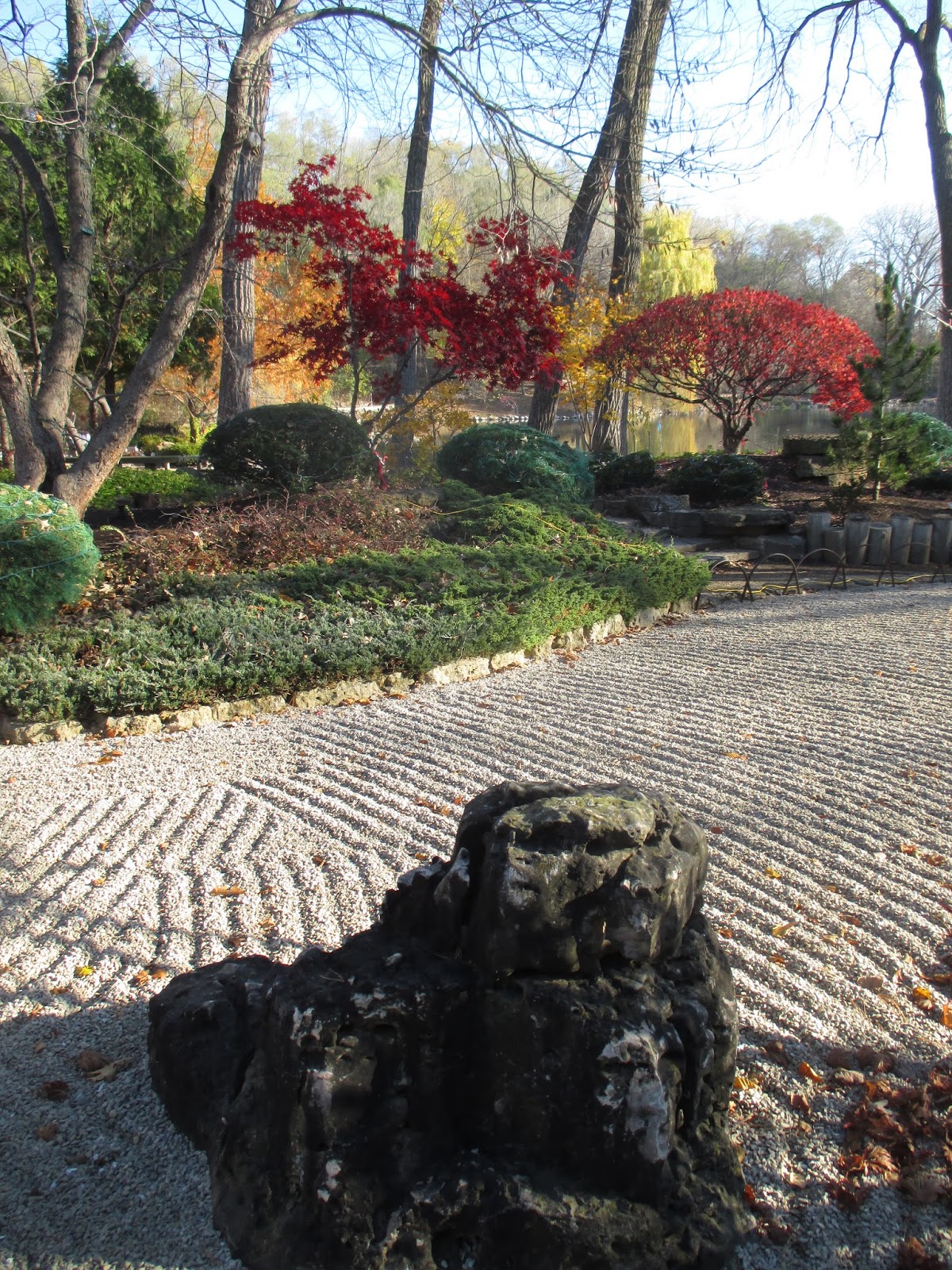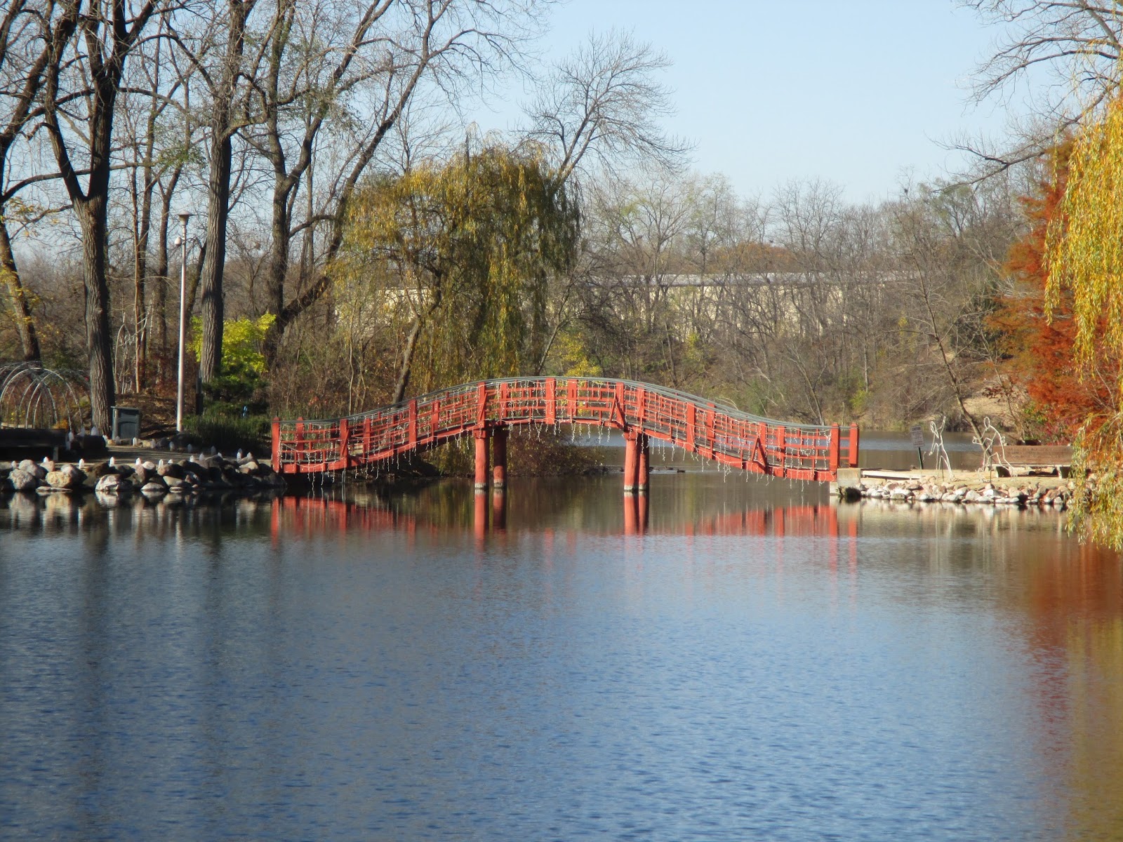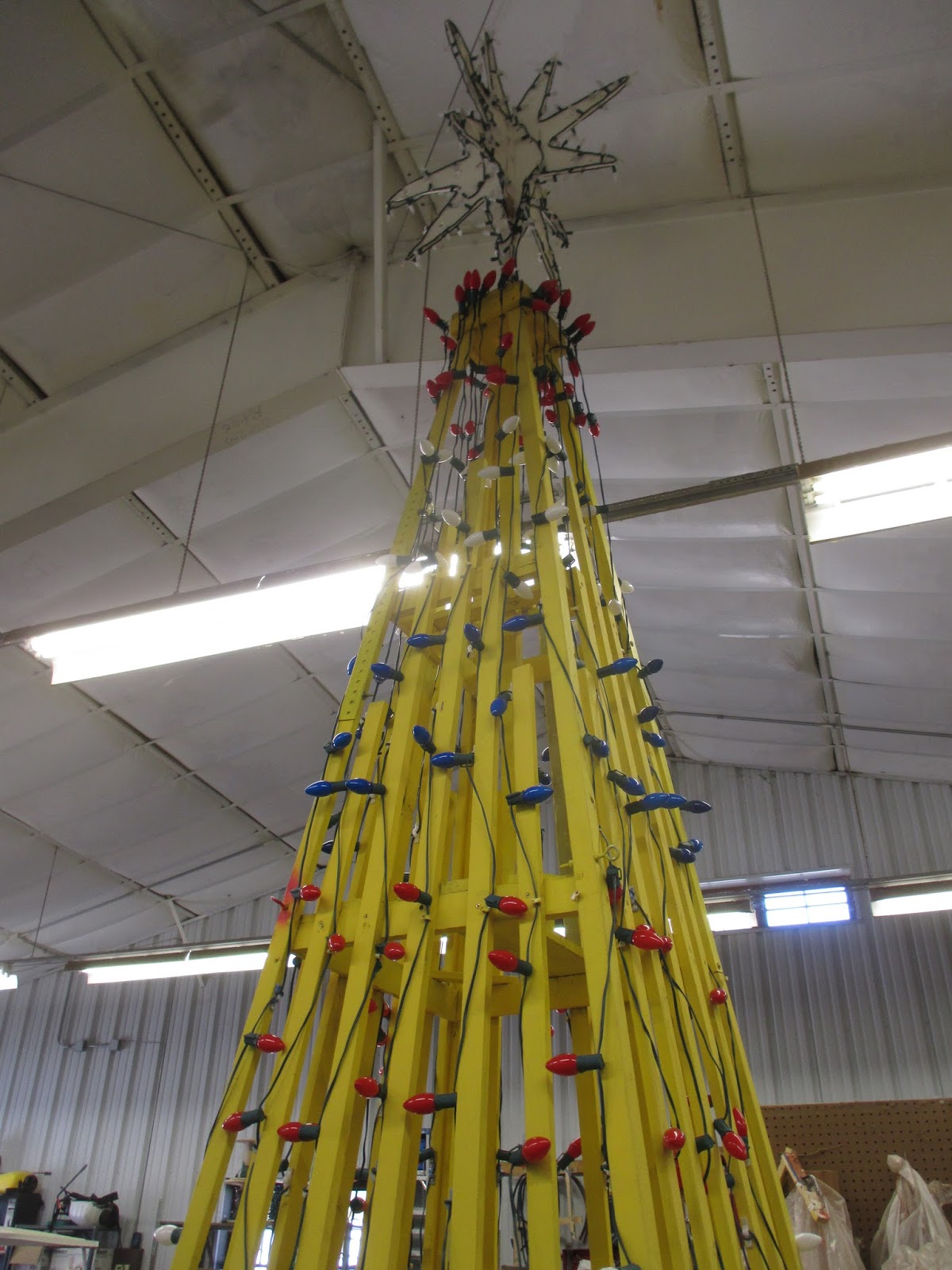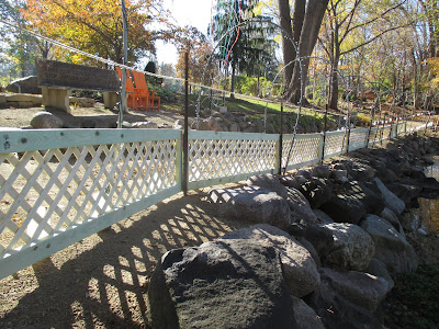 Above is Bob K. cleaning up the water feature in the Nancy Yahr Memorial Children’s Garden today. Bob also put up more arches for the HLS and had some other odds and ends. Cindy had great progress with putting out the half gallon milk jug luminaries today and has them situated with some final stringing tomorrow. Larry H. worked on decorating trees and shrubs near the Rath Environmental Center then shifted to decorating some of the temporary trees we cut last week that are now staked in various locations. Big John hauled out displays, obelisks and had a very full day of HLS duties. I had some meetings but ran cords the remainder of the day.