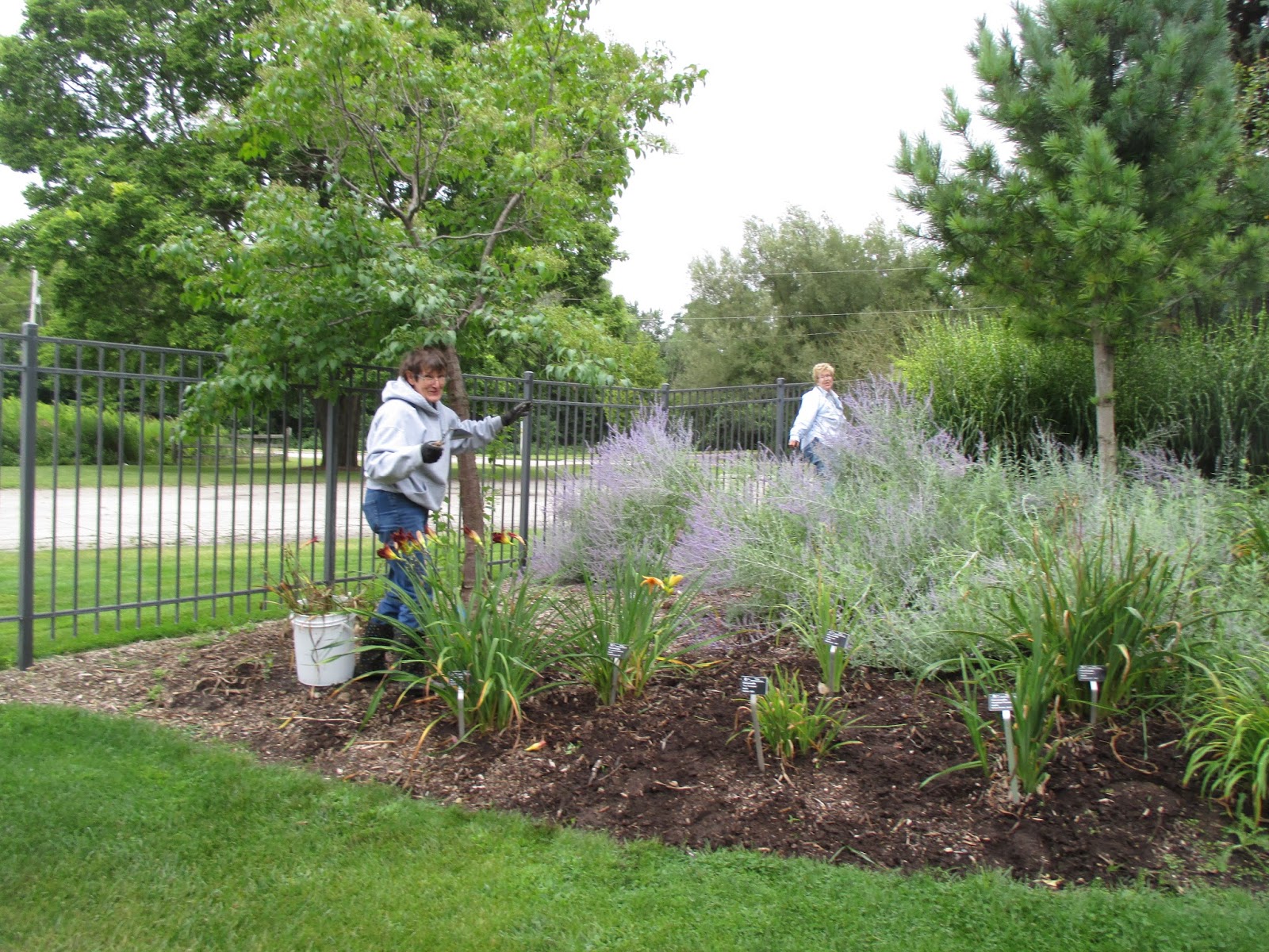 Our grounds staff today included Big John, Terry, Janice, Larry H. and myself. We had a wide range of duties including watering, weeding, tidying, bench leveling, water feature cleaning, mulching, etc. A lot was accomplished and the gardens are looking excellent.