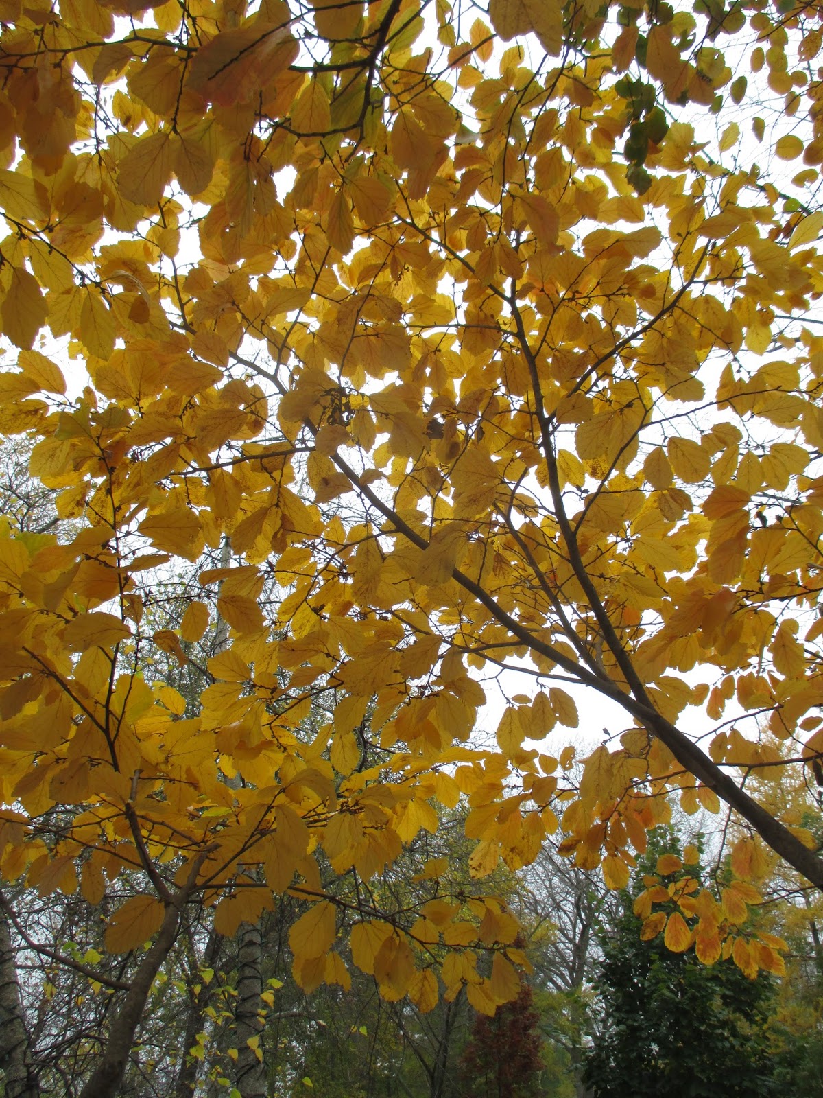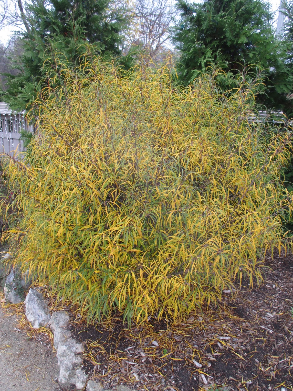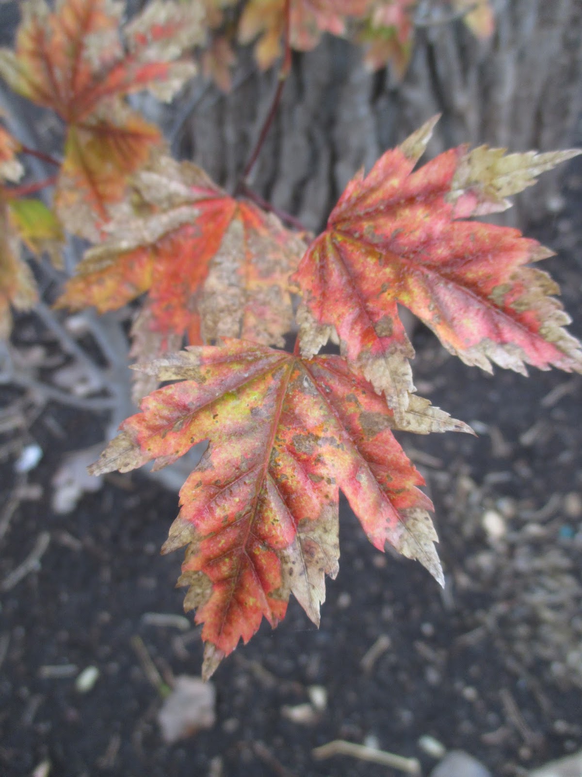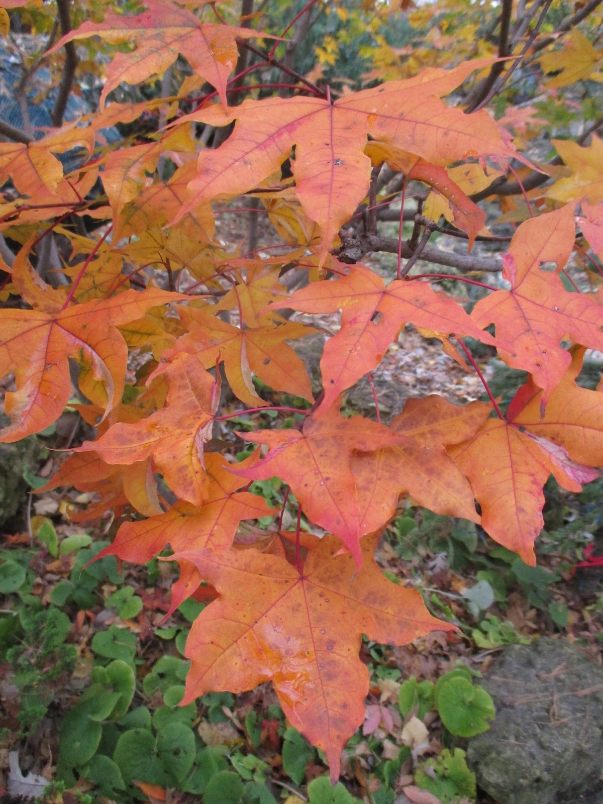 It’s hard to believe that Halloween is tomorrow! We had another decent day, that while starting cold and foggy, experienced a nice progression to sunshine and temperatures in the mid 50 degrees F. Fall color still abounds around the gardens. Above is the ‘Akikaze Nishiki’ Shantung maple (Acer truncatum) looking brilliant in the Japanese garden. This is the time of year when fall color, ornamental grasses, colorful fruiting and showy bark all contribute significantly in the late season garden. It was a very productive Friday out in the gardens for both HLS preparations and gardening.