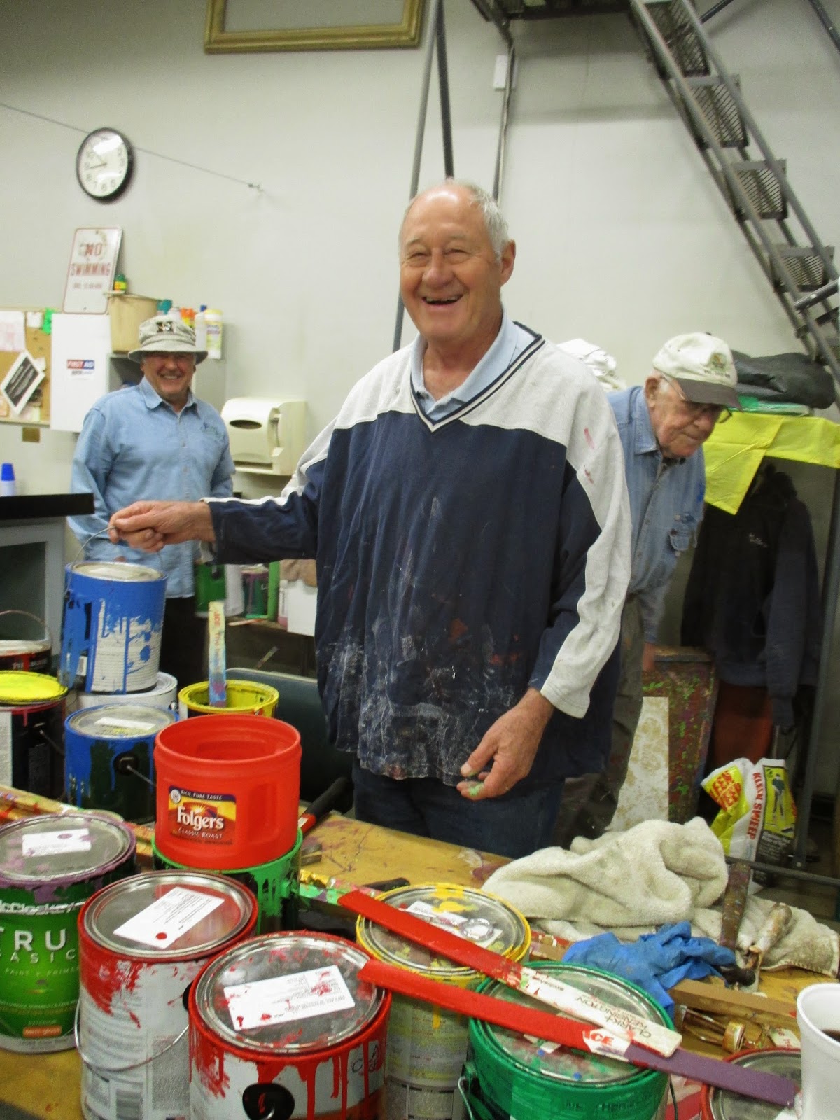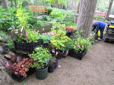Our volunteers included Maury (above) sorting paint and many others. Dr. Gredler (right side of that photo) did some painting and Pat M. (left side of that photo and directly below) worked on some tasks out in the gardens. Bob C. and Ron R. worked on composting while Bob K., Jim D., Vern and Ron Y. continued working on carpentry projects and processing the Garden Art Projects. Dick P. and Dick H. worked on cutting and bending more aluminum stakes for the labels that Gary S. was producing in the office. We also saw Rollie, Jan R., Rose Marie L., Chuck S., Mary D. and many others. We saw quite a few other volunteers today stopping by or shopping in the sale. It was a busy day despite some inclement weather earlier in the day. Further below are some additional images from the gardens.