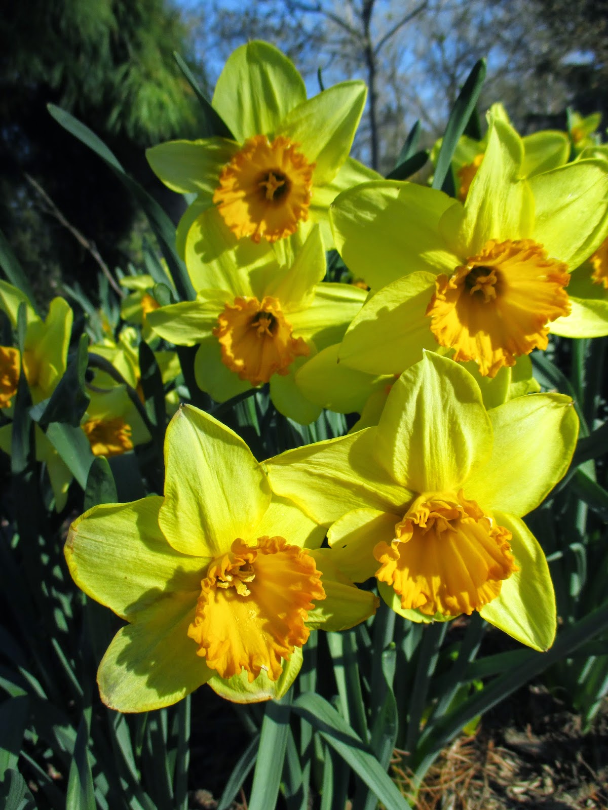 The grounds staff had a wide range of tasks. Larry spent time working on equipment and finished filling the sunken garden pool and getting the fountain up and running in that garden. All of our water features will soon be cleaned and up and running by Mother’s Day. Janice helped organize our morning volunteers, worked on potting up new deliveries and helped with many other projects including watering and fertilizing. Big John helped stage a big mulching project this morning and moved on to installing more containers and obelisks. He also worked on starting a big edging projects. I had more meetings but was able to get outside to install some memorial signs and make plans for where select items will be placed out in the gardens. Below are some colorful images from the gardens as well.