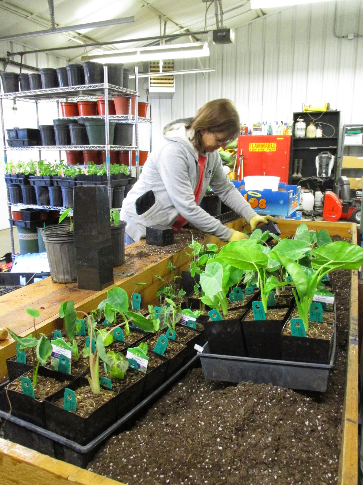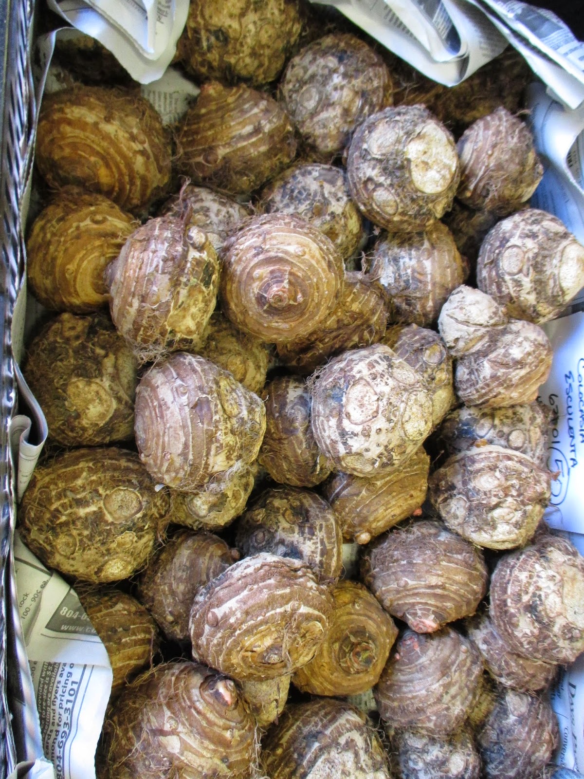 elephant ear (Colocasia esculenta) bulbs ready to be potted up