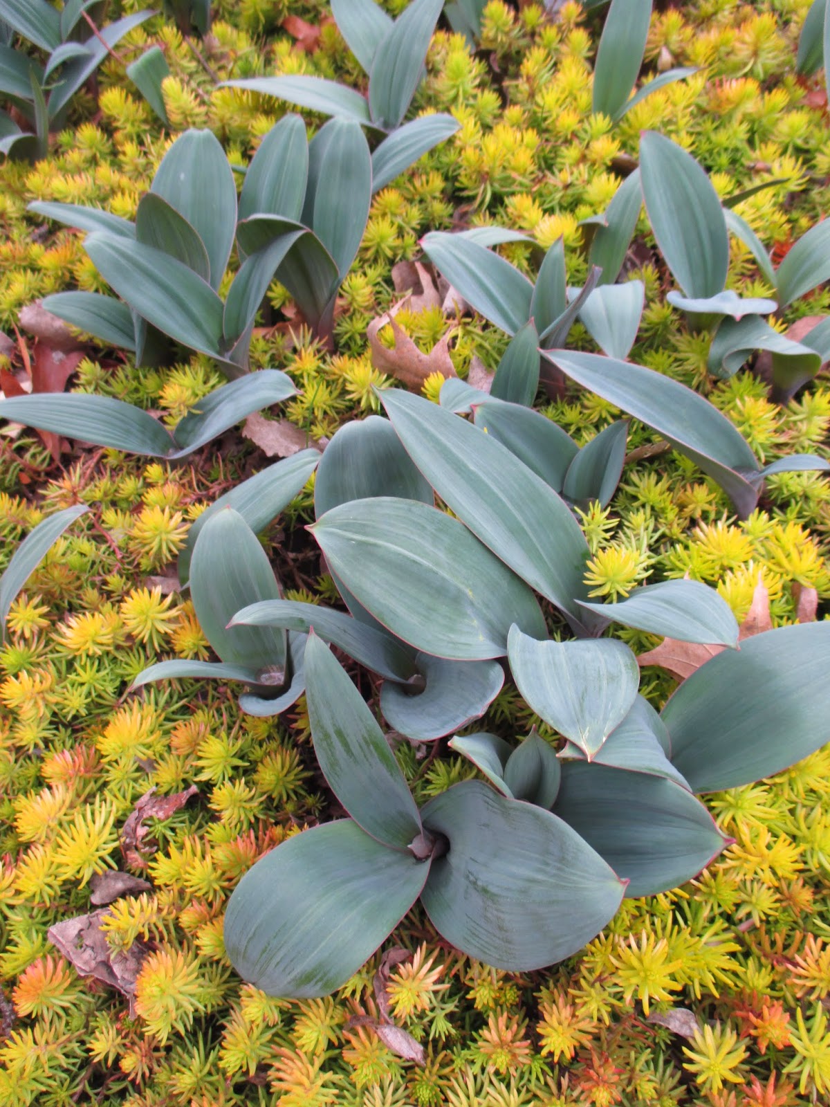 Allium karataviense foliage amongst ‘Angelina’ stonecrop (Sedum rupestre) – last night at Olbrich Botanical Gardens (Madison, WI)