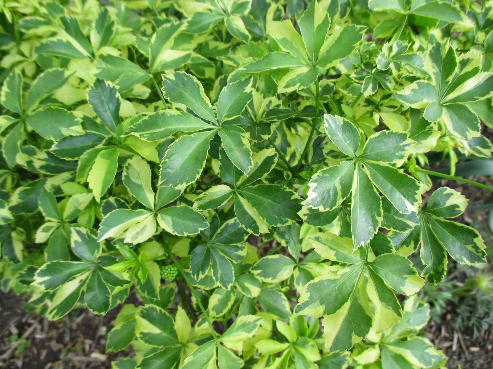 variegated fiveleaf aralia (Eleutherococcus sieboldianus ‘Variegatus’) – shrub