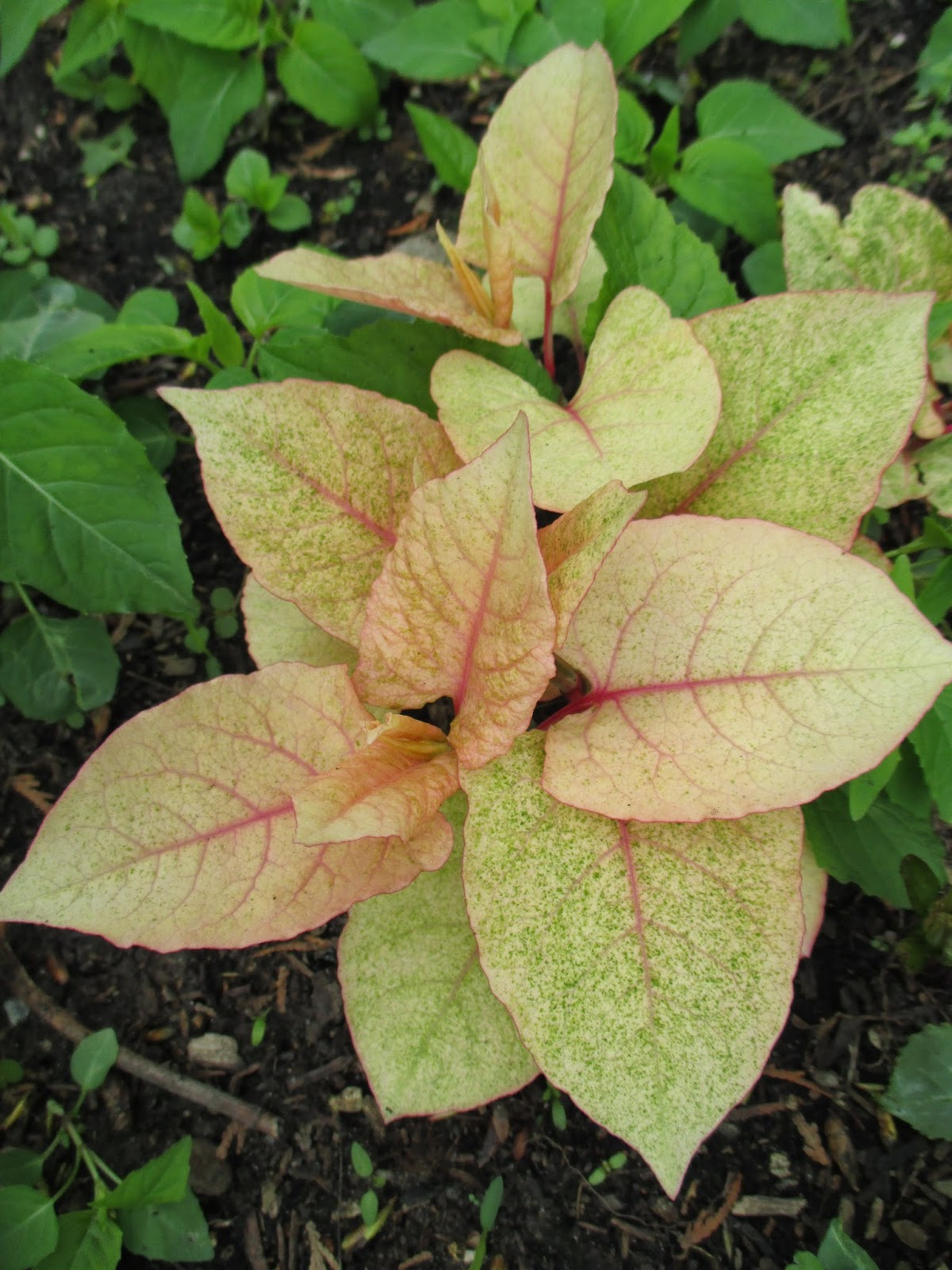 variegated knotweed (Fallopia japonica ‘Variegata’) emerging – perennial