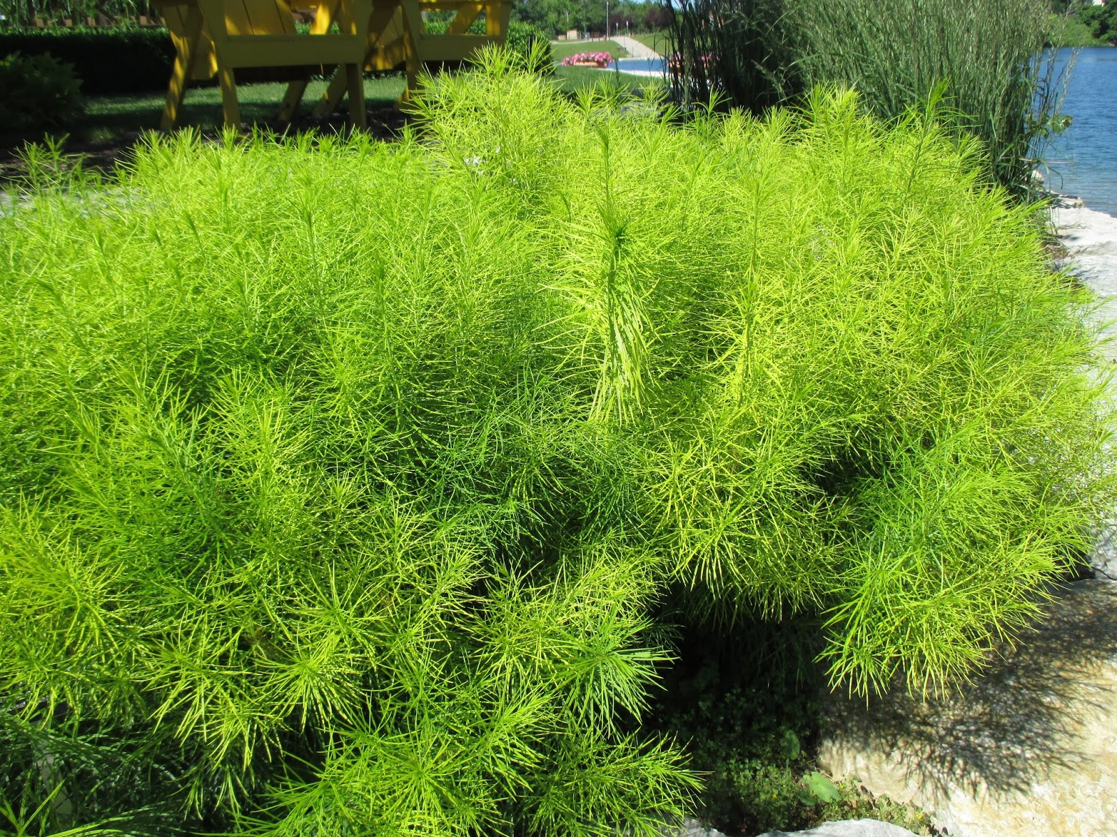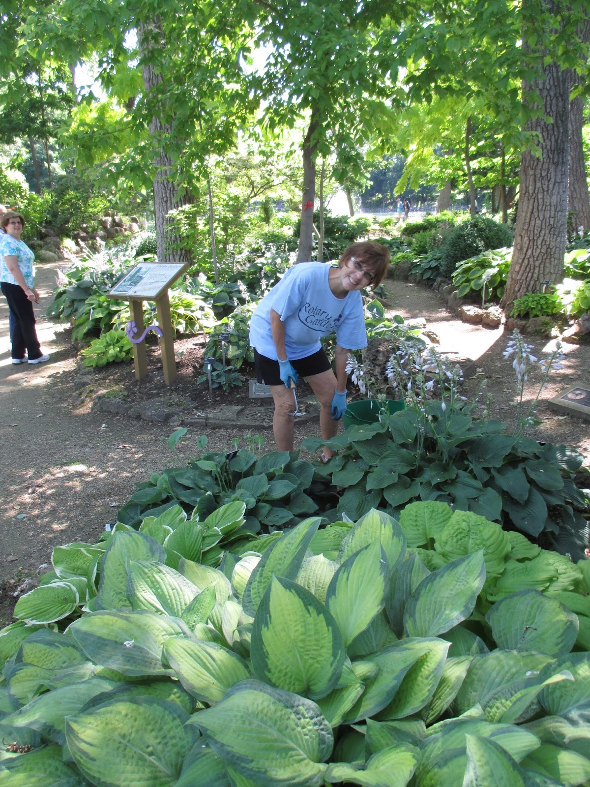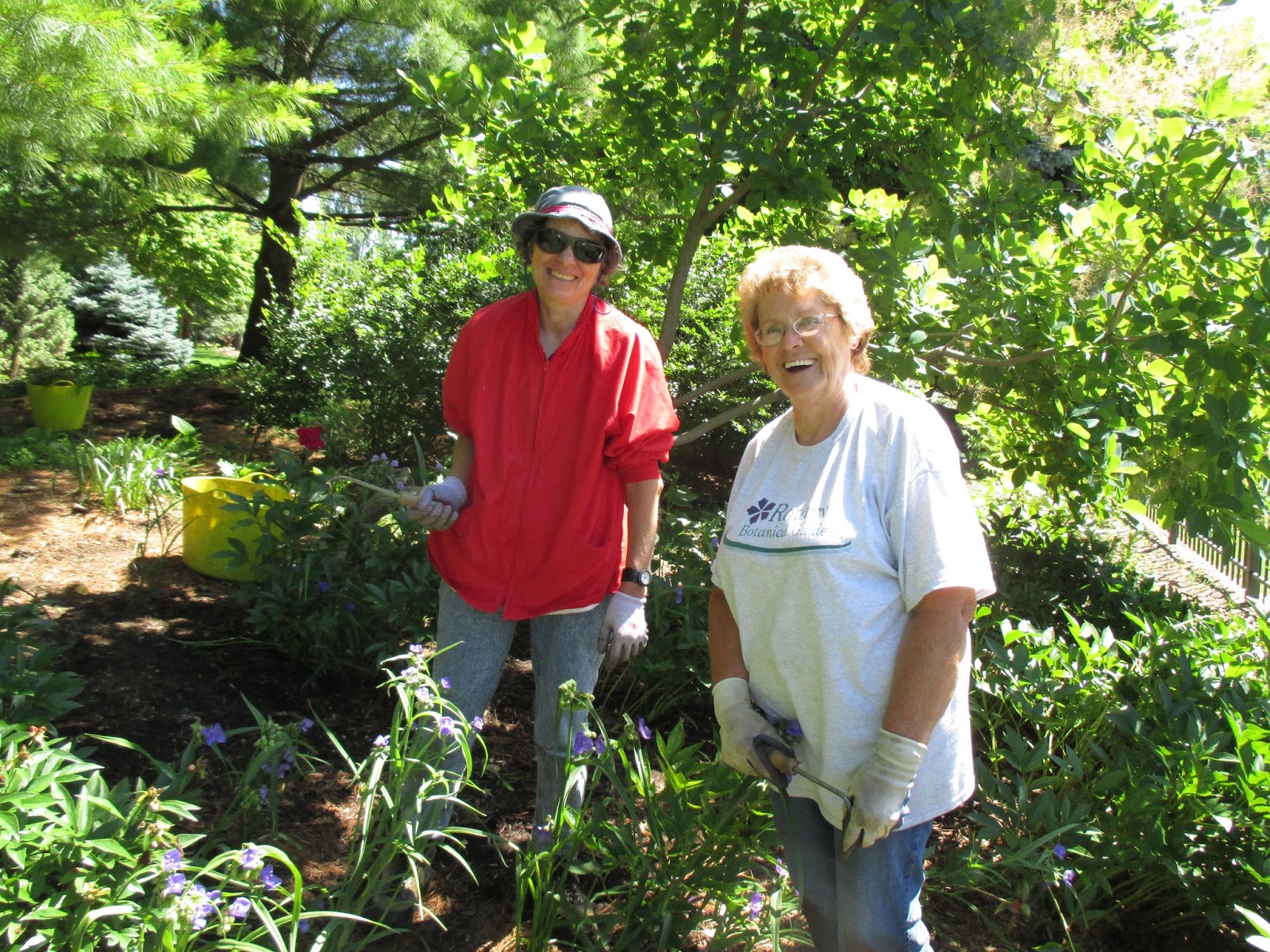 Today was a beautiful sunny day and quite a departure from the rains and winds yesterday. We were happy that the storm abated before reaching Janesville as we had very little wind damage and received a nice .5″ of rain. Our rainfall has been pretty consistent this year and it’s always nice to let Mother Nature do the watering as opposed to turning on the sprinklers! The Russo Family Fountain looked great this morning as seen above. We were impressed with the number of visitors out in the gardens today and the summer colors are starting to fill in quickly as the annuals mature with this heat. We had a solid grounds crew today and some excellent volunteers as well. All the photos in this blog were taken today.