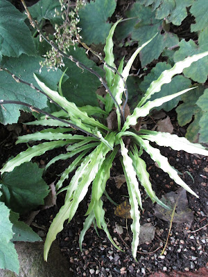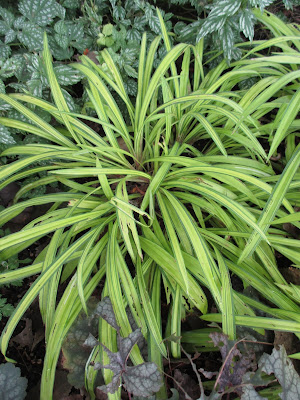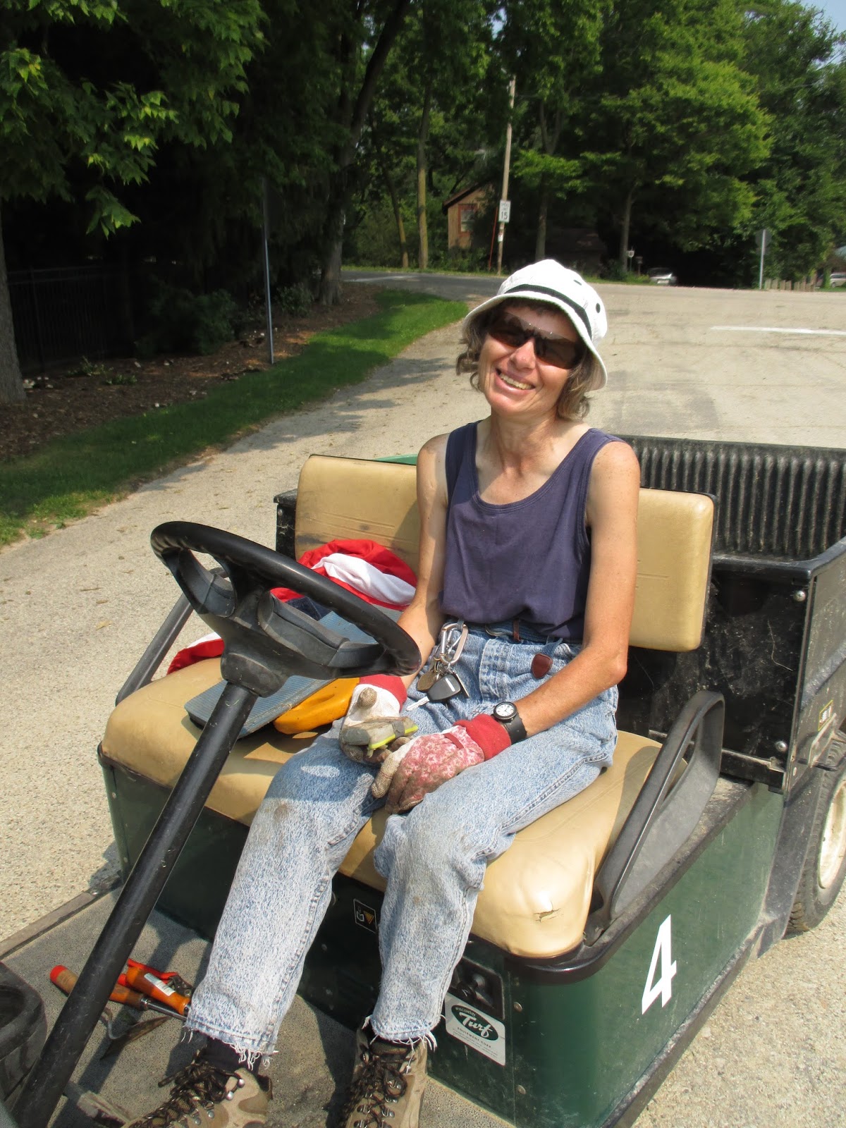 I had a tour this morning and lacked the time to photograph all of our wonderful volunteers but was able to capture Eva (above) on her way back to join Kathy with primping and tidying in the entrance garden and terrace garden. The ladies always do a nice job. Rollie (directly below) mowed along with Dr. Gredler. Lloyd worked on path repair and improvements while Ron R. collected leaves and debris from other areas. Vern, Dave, Jim and Ron Y. continued on their carpentry projects which included building some neat raised beds for all-accessible gardening. Dick P. was in to help out and Dick H. ran to the dump and was working on equipment repairs. Pat M. continued with his pre-Holiday Lights Show duties which are significant. Gary was in to help with some pre-plant sale activities and Pat C. popped by for label production. Maury ran many errands for us and Alan continued with his edging/weeding project around the Horticulture Center beds. We also saw Dr. Yahr, Terri N., Karen, Skylar and many others today including Larry Olsen who stopped by around the lunch hour.