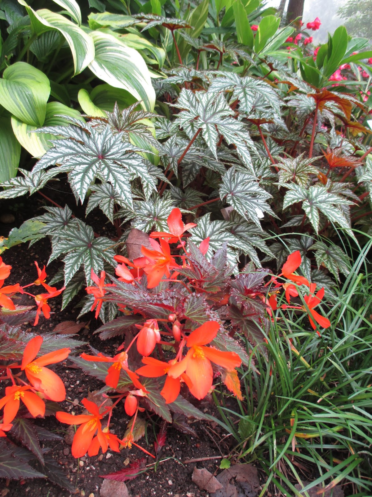 The gardens continue to be very colorful. Above is a small vignette in the shade garden which features ‘Unstoppable Upright Fire’ begonia (Begonia) and the silvery ‘Pegasus’ begonia (Begonia) as well. We had some nice rain on Saturday which has mitigated our need for irrigation or sprinklers for at least yesterday and today as it still looks quite damp out there. While the temperatures should be increasing this week in to the upper 80 degrees F and lower 90 degrees F, the plants wont mind the warm up. Some of the tropicals, including our Elephant Ear Collection, would sure appreciate the heat! We had another super turnout of volunteers today and with watering needs minimal, we all collectively dove in to gardening projects and many other duties. All the photos in today’s blog were taken this morning.