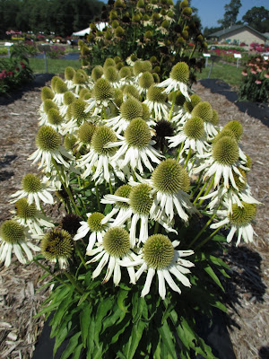 The classic white coneflower (Echinacea purpurea) never fails to dazzle when at summer peak. There are some older varieties that still have merit in the garden although some more modern selections are exciting as well. I’ve included photos of many that I’ve observed over the years including some exciting double forms as like ‘Coconut Lime’ seen directly above. Heights will range between 12″ and 36″ by variety so do some research prior to planting them in a full sun (ideal) situation with decent soils and ample moisture. Pollinators will appreciate these as well. I will say that some white selections don’t “age” well in that the older flowers will show petal browning and the plant looks tired and “dirty” during this transition. Some varieties will maintain a VERY long period of pure white; my favorites for a lengthy white contribution are ‘Milkshake’ and ‘Virgin’. Enjoy this abbreviated assortment of some of the best of the white coneflower varieties…